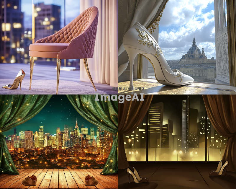 깔끔한 슈즈 단상 뒤에 커튼 또는 도시 이미지, 럭셔리한 무드, 슈즈 이미지와 합성하기 좋은 구도