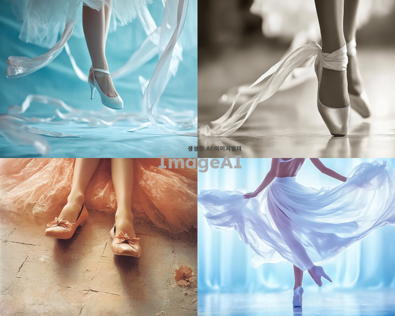 발레 무드, 여성스러움, 흩날리는 리본, 하단에 단상