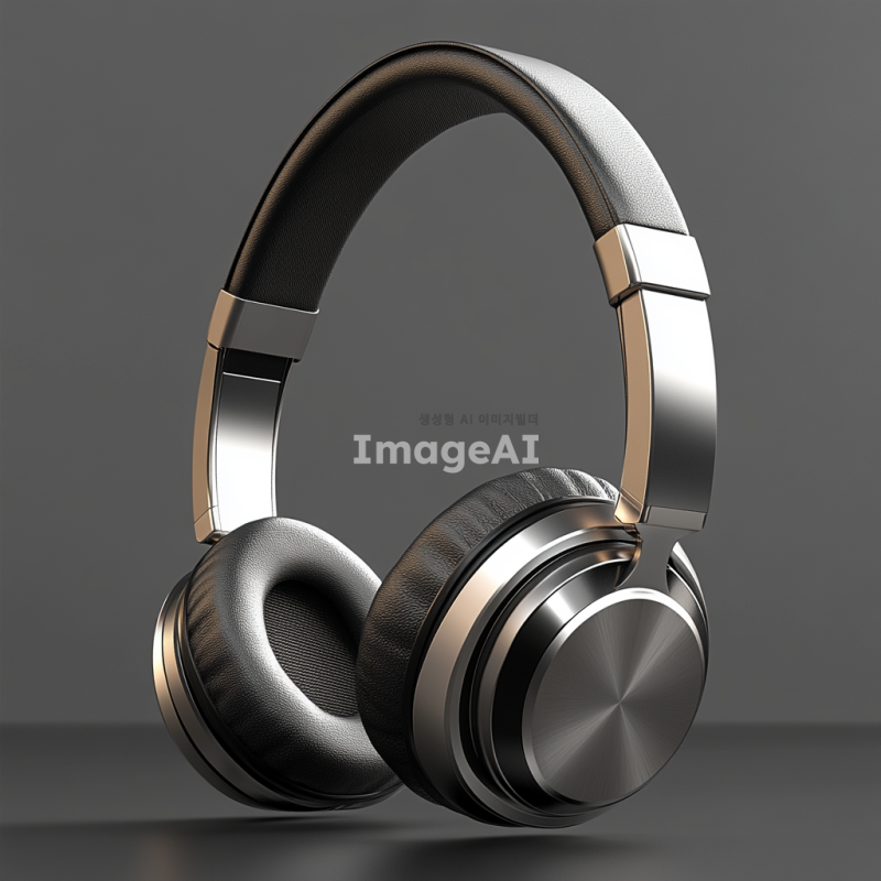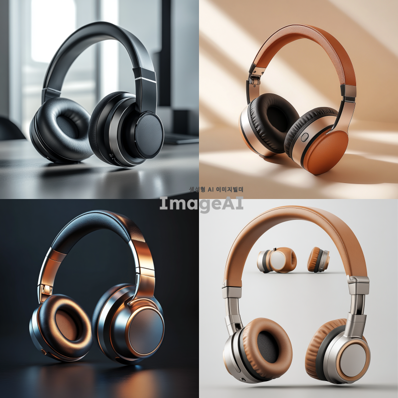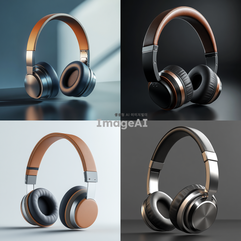고급스러운 디자인의 무선 헤드폰, 매끈한 메탈과 가죽 소재, 편안한 이어패드, 현대적인 감각의 기술적 요소 강조, 배경은 부드러운 조명 아래의 스튜디오 환경, 깔끔하고 세련된 느낌, 다양한 각도에서의 디테일한 묘사.