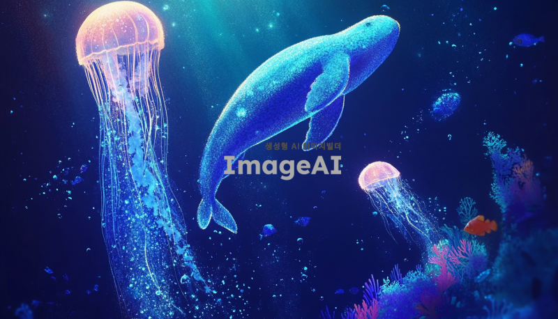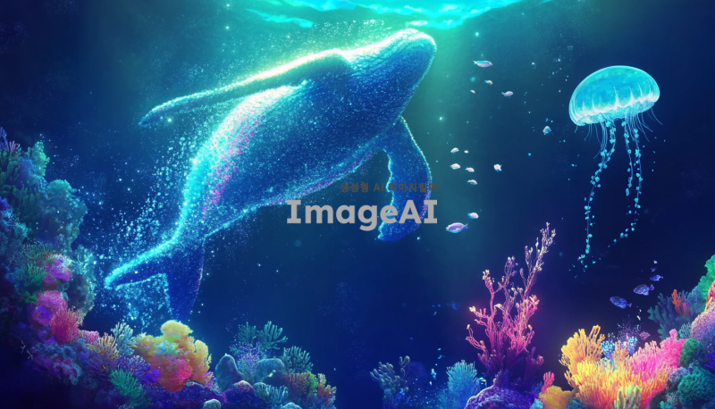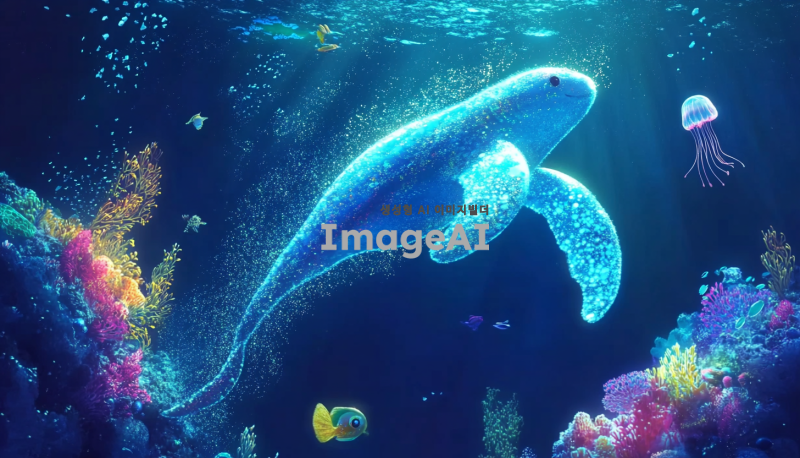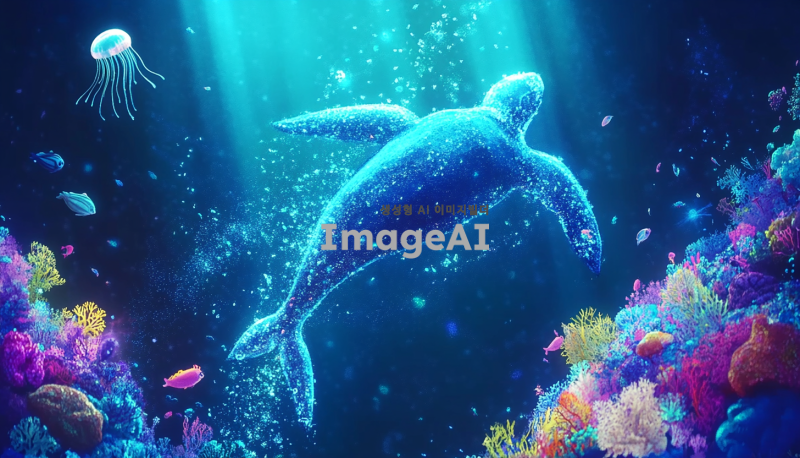 다양한 해양 생물들이 우아하게 헤엄치는 아름다운 수중 애니메이션. 밝고 다채로운 산호초와 물고기, 해파리, 바다거북이 자연스럽게 움직이는 장면. 생물들은 부드럽고 유연한 움직임을 가지며, 위에서 부드러운 파란색과 청록색 빛이 내려와 평화롭고 신비로운 수중 분위기를 조성.