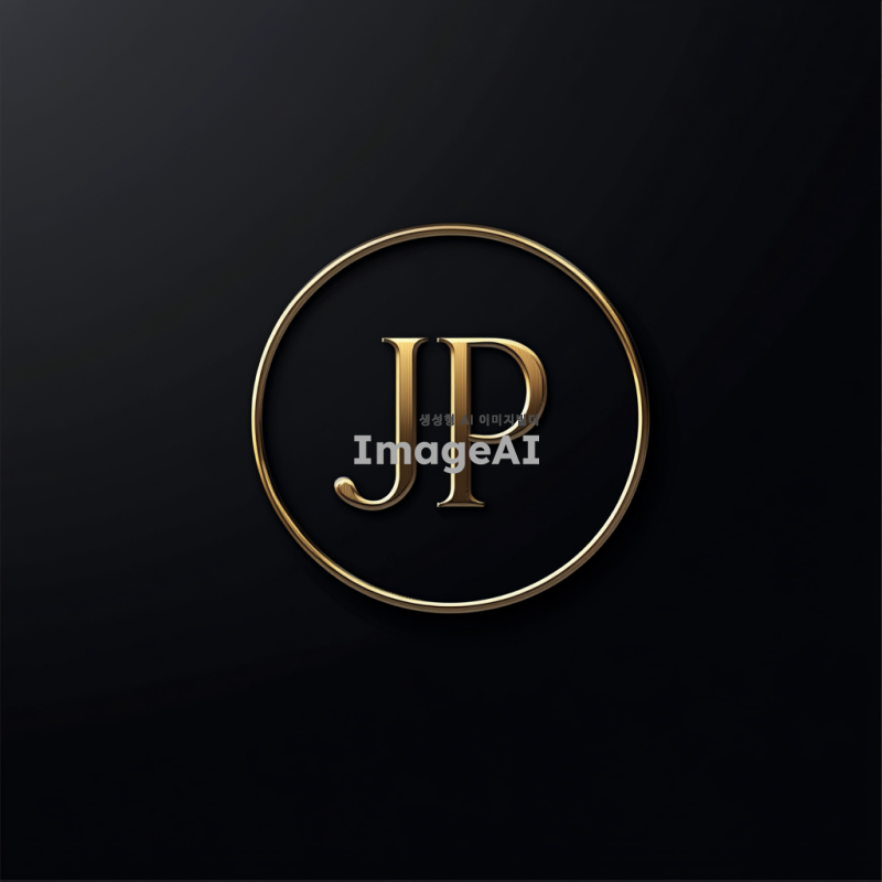 검은색과 금색을 조화롭게 사용한 세련된 JP 로고 디자인, 현대적이고 미니멀한 스타일, 고급스러운 서체, 은은한 광택 효과, 고급 브랜드 느낌을 주는 심플한 배경.