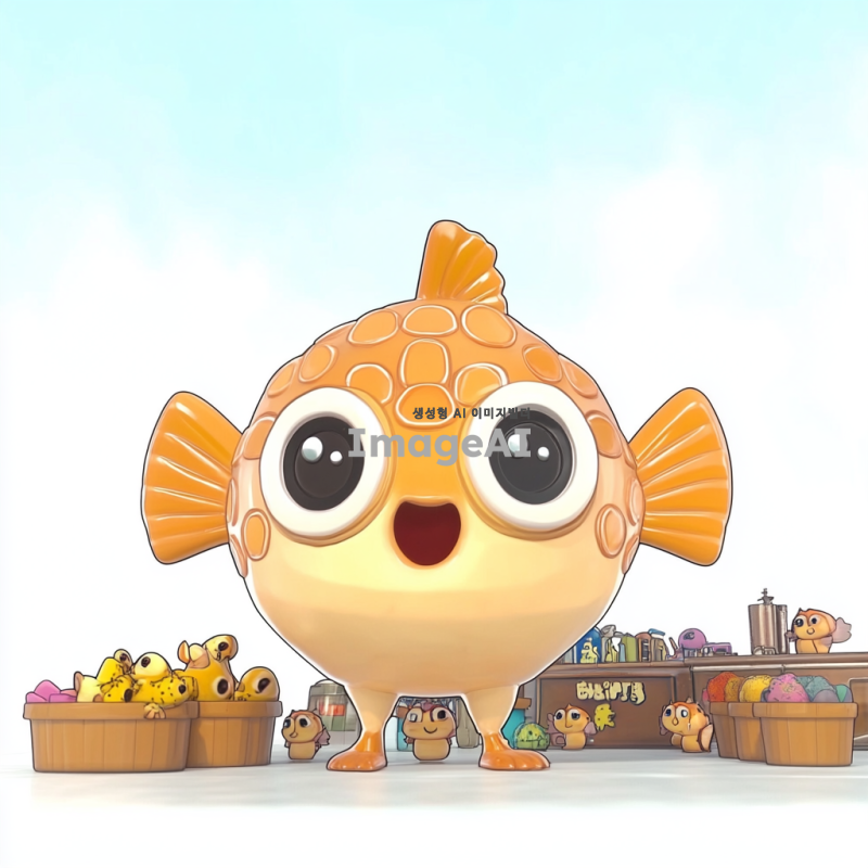 귀여운 어묵 캐릭터, 동글동글한 얼굴, 큰 눈과 작은 입, 밝은 색상의 옷을 입고 있는 모습, 활기차고 친근한 분위기, 작은 손과 발, 재미있고 사랑스러운 포즈, 배경은 간단하고 부드러운 색조, 애니메이션 스타일, 어린이들에게 친숙한 느낌.