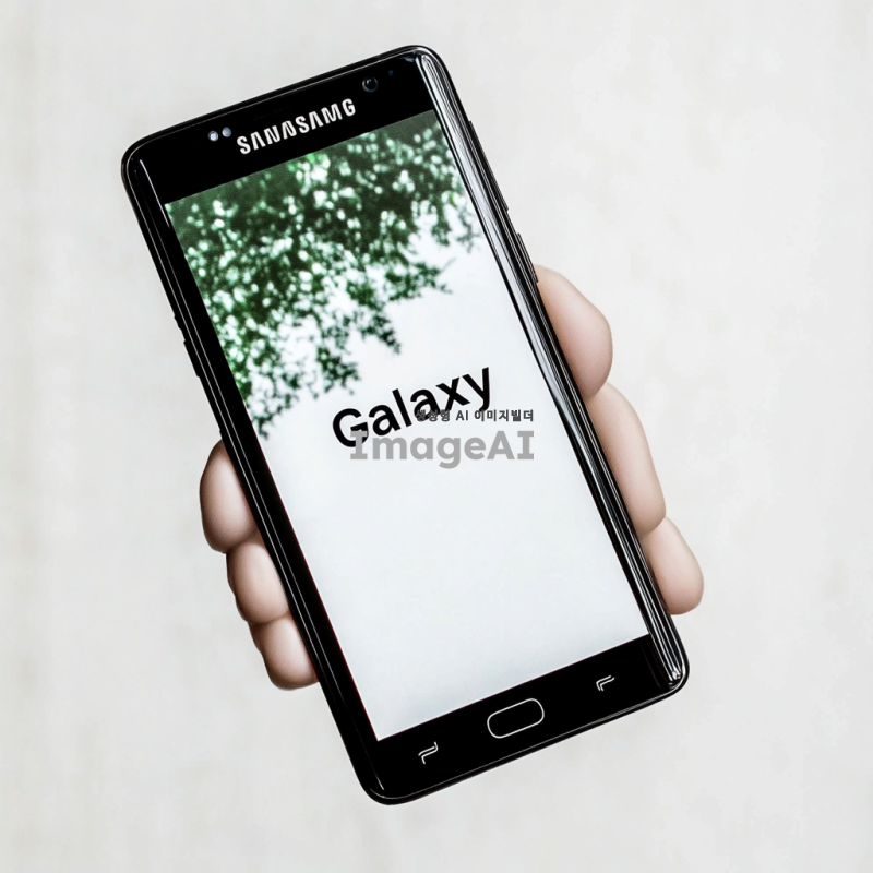 참조된 사진에서 아래에는 삼성로고 화면 중간에는 갤럭시가 들어간 이미지로 바꿔줘