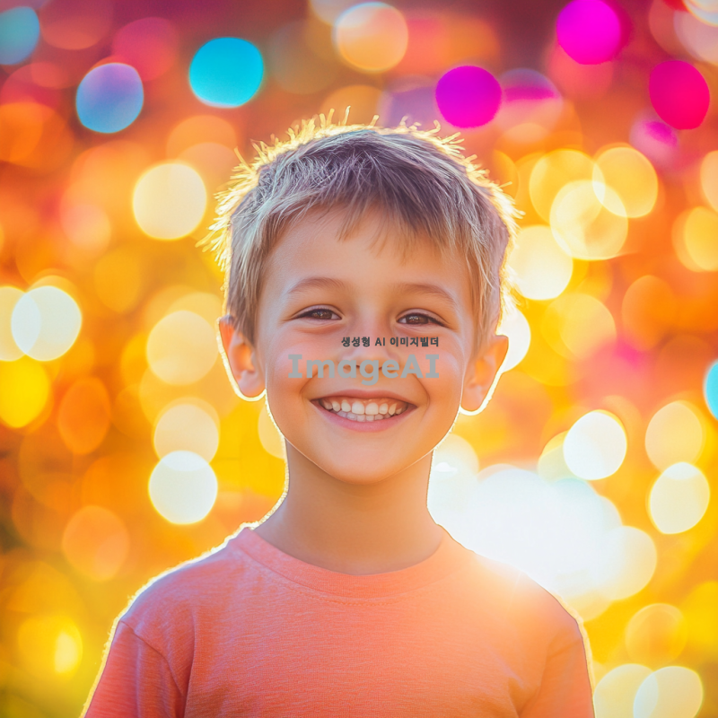 밝고 화사한 배경에서 환하게 웃고 있는 5세 외국인 남자 아이, 건강하고 행복한 표정, 자연스러운 포즈, 깨끗하고 선명한 이미지, 아이의 에너지가 느껴지는 장면, 따뜻한 조명, 친근한 분위기.