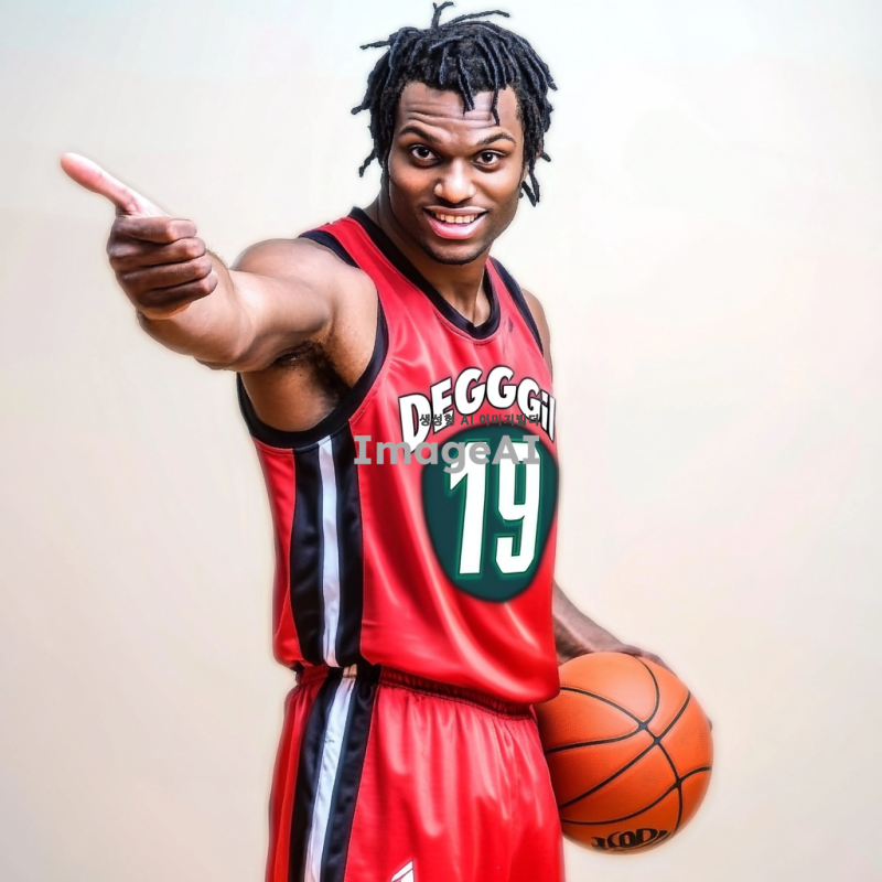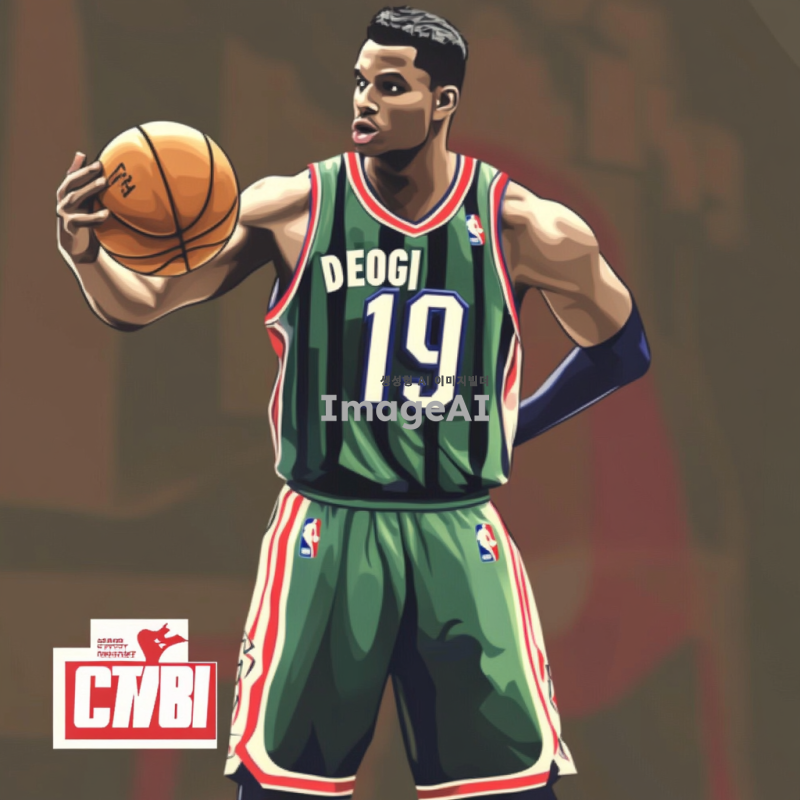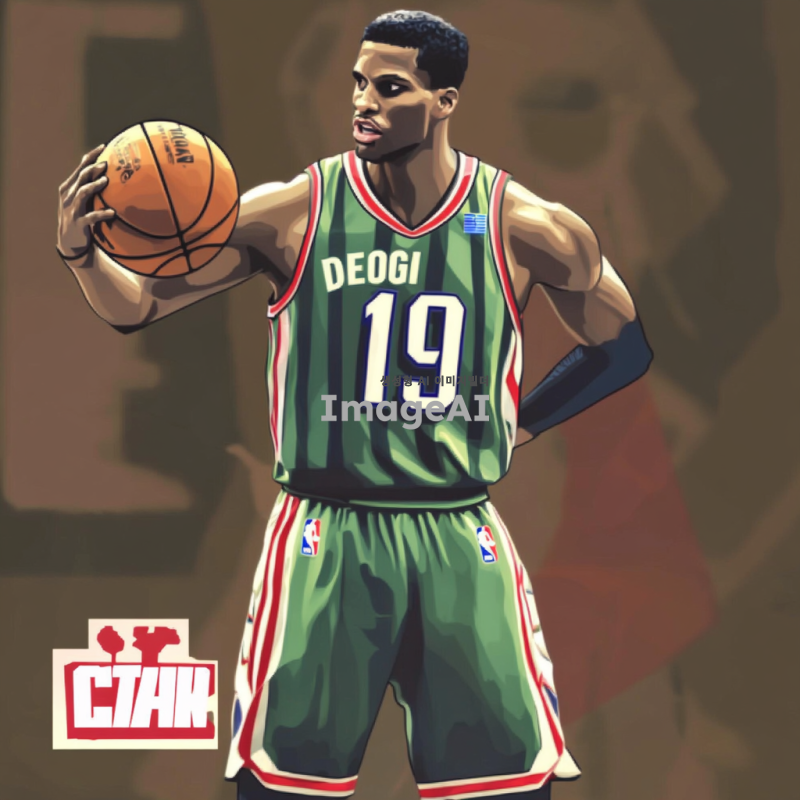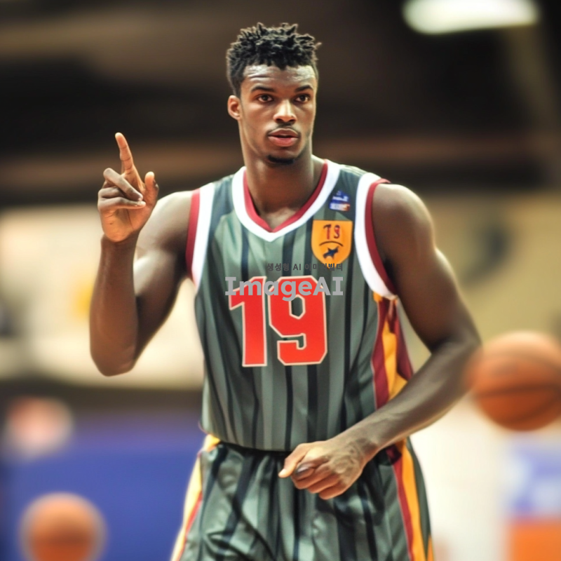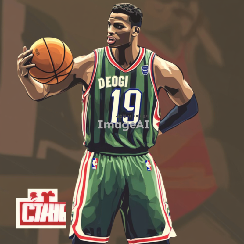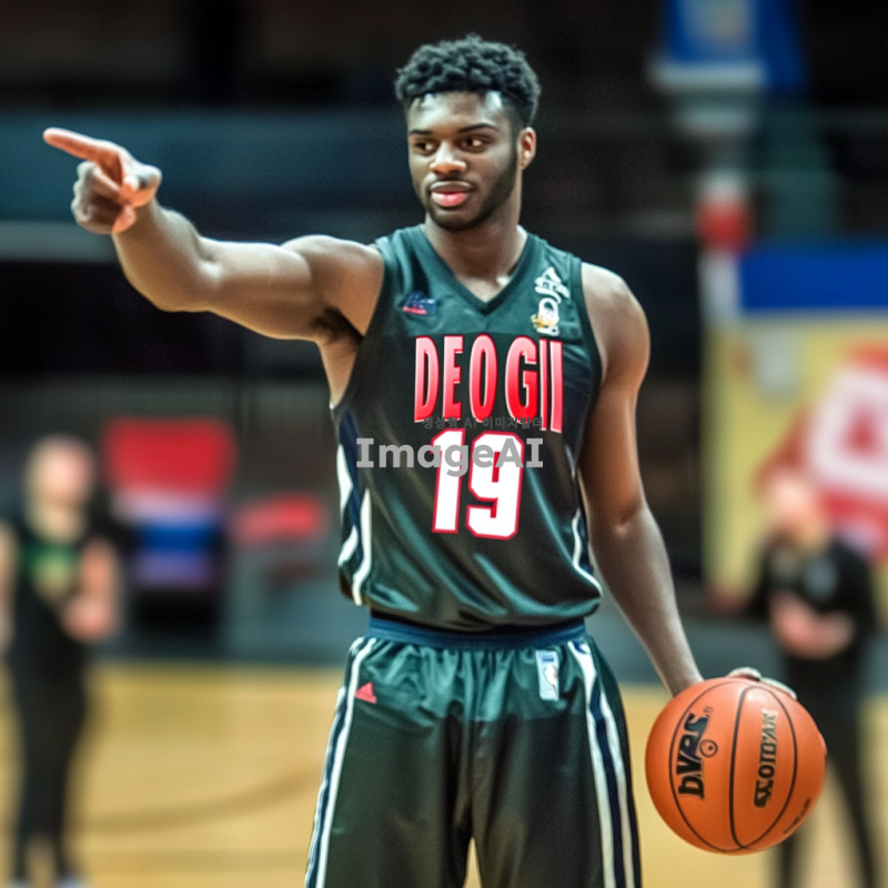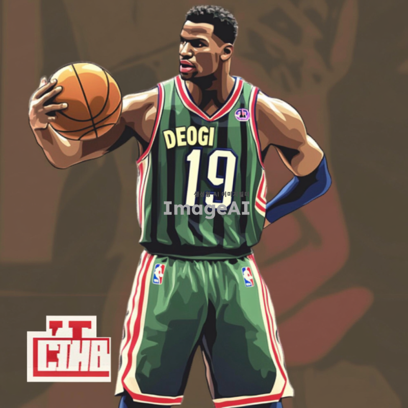 이 녀석의 이름은 DEOGIII, 농구선수, 등번호 19번, 뒤를 돌아보며 나를 향해 자신의 등번호를 가르키는 모습
