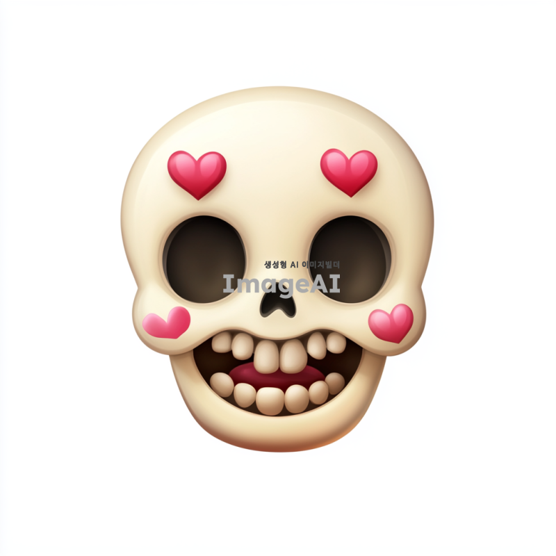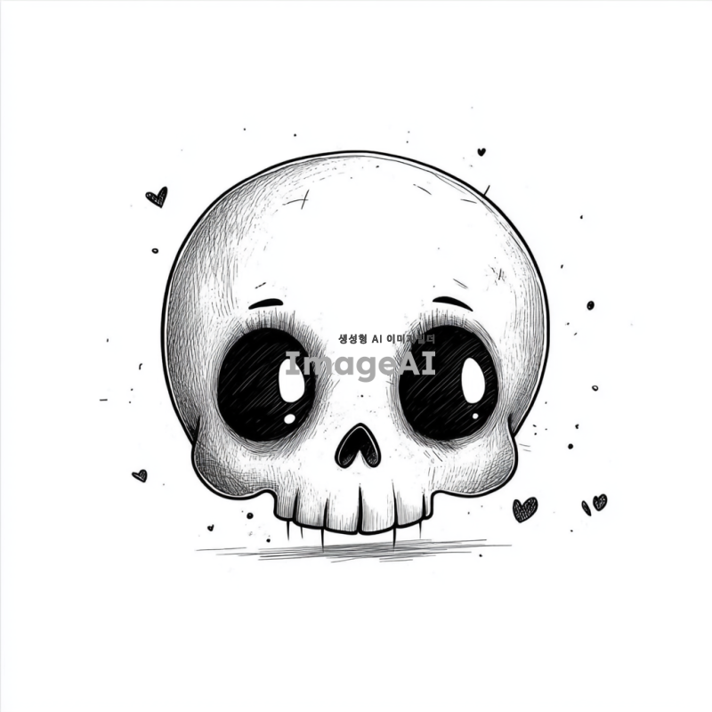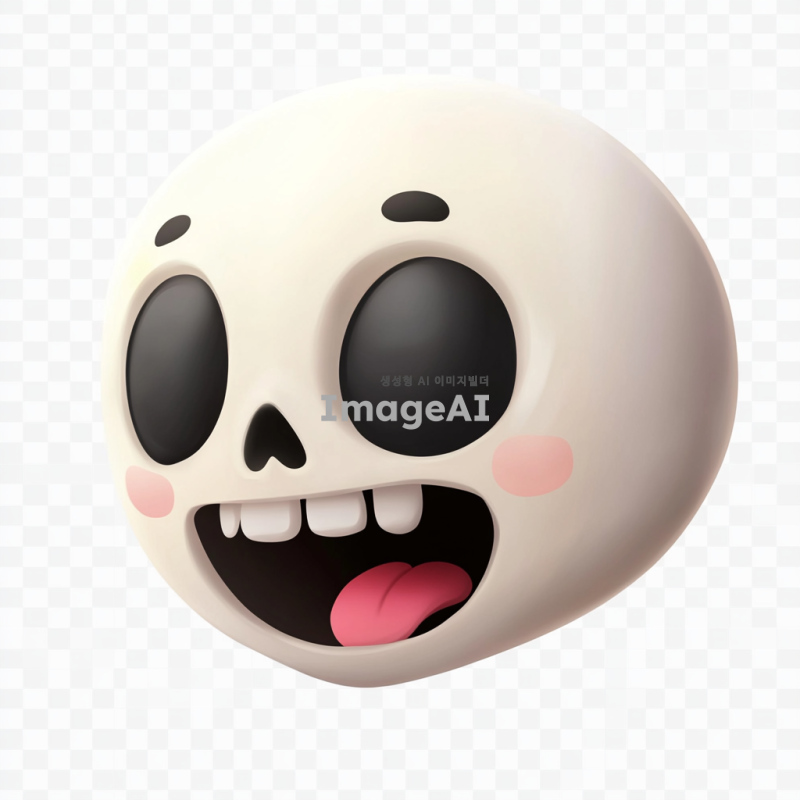 귀엽고 친근한 해골 이모지 오로진 흰색과 검은색만 사용하고 투명한 배경을 사용해야함