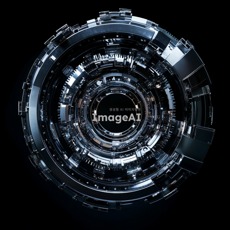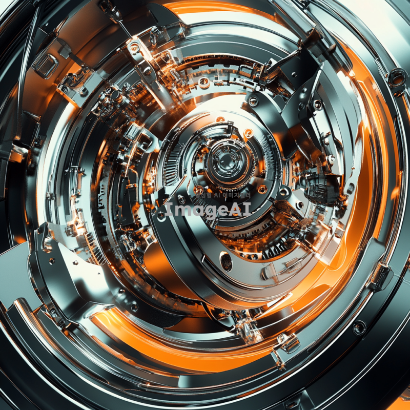 플라이휠의 역동적이고 에너지 넘치는 이미지, 기계적 요소와 회전하는 움직임을 강조, 금속성과 반짝이는 표면을 가진 현대적 디자인, 복잡한 기어와 메커니즘이 서로 연결되어 있는 모습, 빛과 그림자가 어우러져 생동감 있게 표현된 장면, 공학적 정밀함과 혁신적인 기술의 조화를 나타내는 이미지.