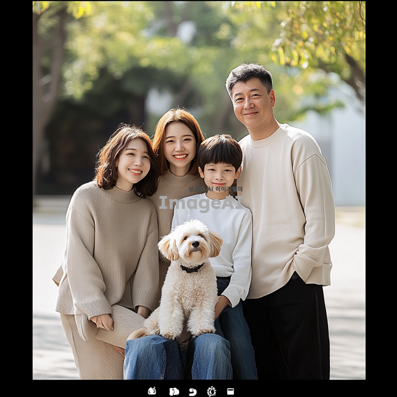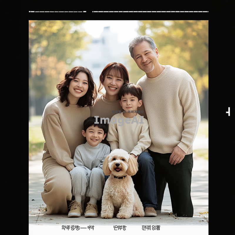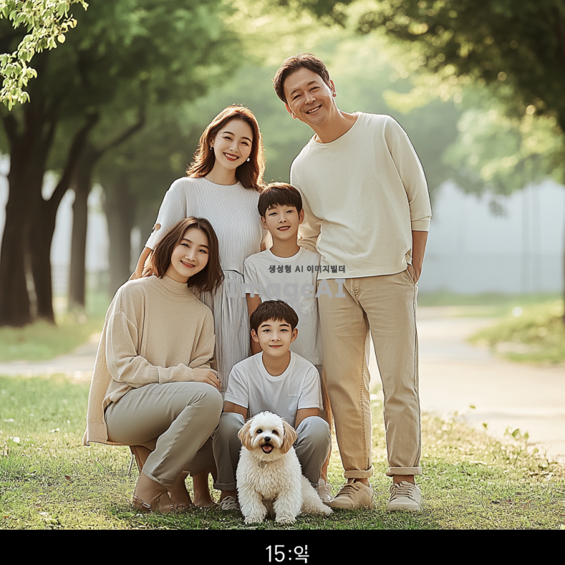 말티푸랑 같이 있는 가족사진을 만들어주는데 어머니 키는 154고 아버지 키는 175이고 남동생 키는 178이고 내키는 155인데 사진의 이미지 인물 비율의 전신을 선으로 표시해줘