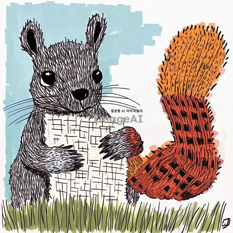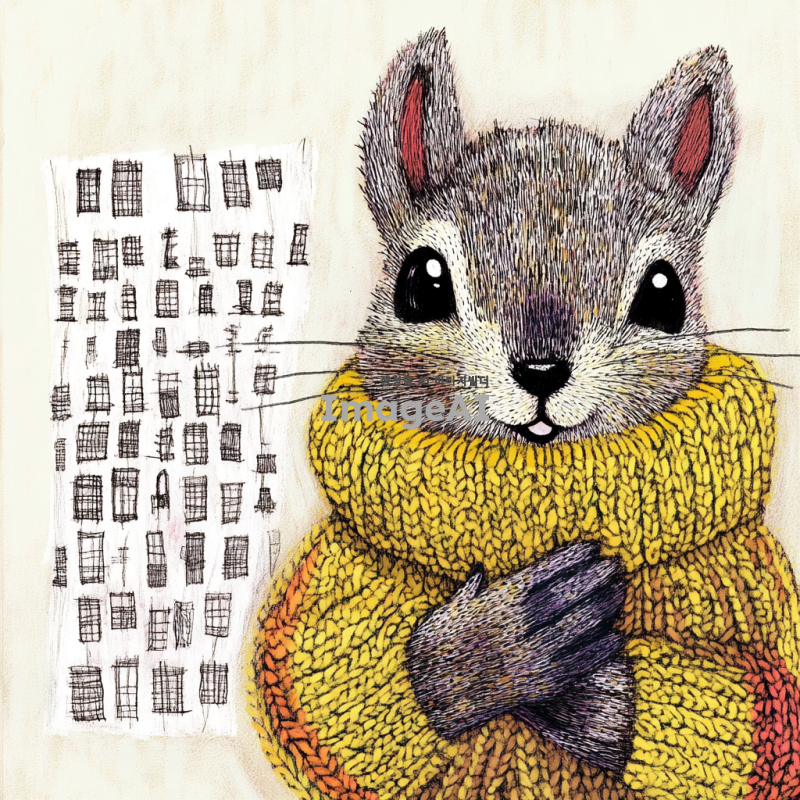참조 자료와 같은 그림체로 뜨개질 장갑의 재질로 다람쥐를 그려줘
