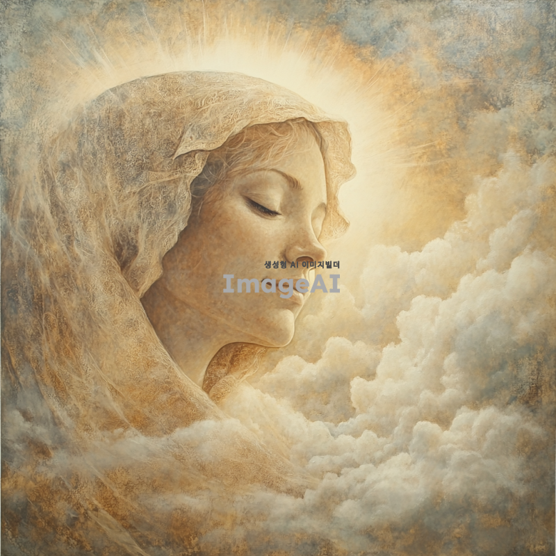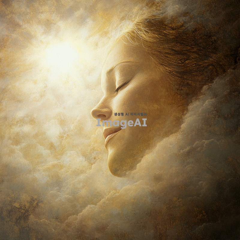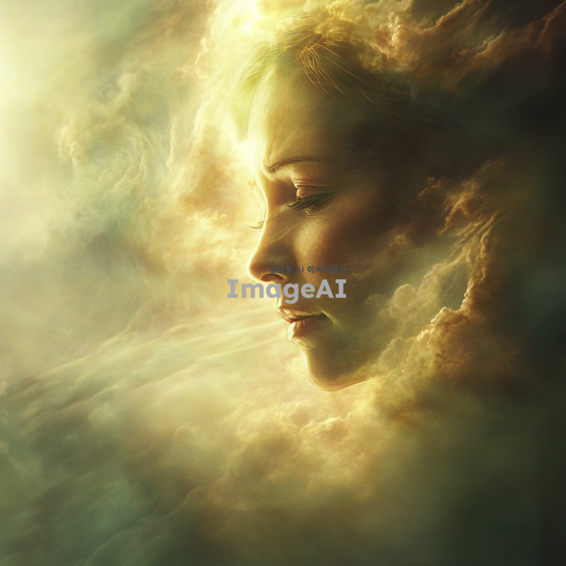 어머니의 따뜻하고 깊은 사랑이 담긴 모습, 하늘에서 아들을 지켜보며 희망을 전하고자 하는 모습. 어머니의 얼굴에는 슬픔과 안타까움이 깃들어 있으면서도 강한 위로와 희망을 주고자 하는 결의가 보인다. 그녀의 주변에는 부드럽고 따스한 빛이 감싸고 있으며, 하늘과 연결된 듯한 느낌을 주는 구름이 어머니의 뒤에 펼쳐져 있다. 다니엘에게 보내는 메시지를 담은 듯한, 부드러운 미소와 눈빛 속에서 끊어지지 않는 깊은 연결이 느껴진다. 이 이미지에는 절망 속에서도 희망을 잃지 말라는 어머니의 간절한 마음이 담겨 있다.