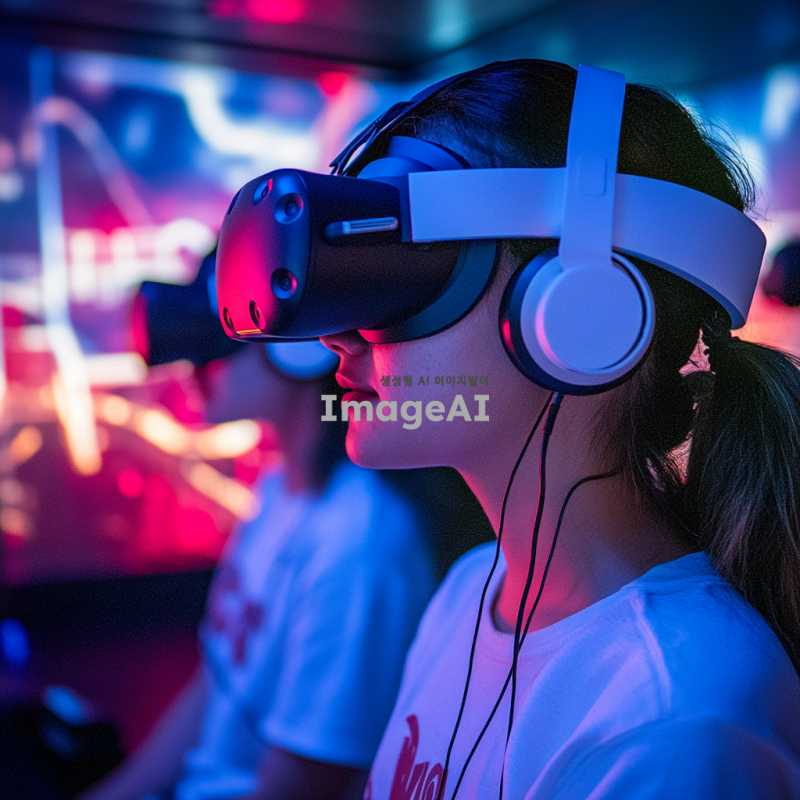 VR 헤드셋을 착용한 사람들이 오징어 게임의 징검다리 게임을 체험하는 모습, 긴장감 넘치는 분위기, 현실감 넘치는 가상 환경, 참가자들의 집중한 표정, 가상 현실 속에서의 다리와 장애물, 생생한 색감과 디테일, 현대적인 VR 장비와 기술의 조화, 몰입감 있는 게임 플레이 장면, 다양한 각도에서 본 참가자들의 모습.