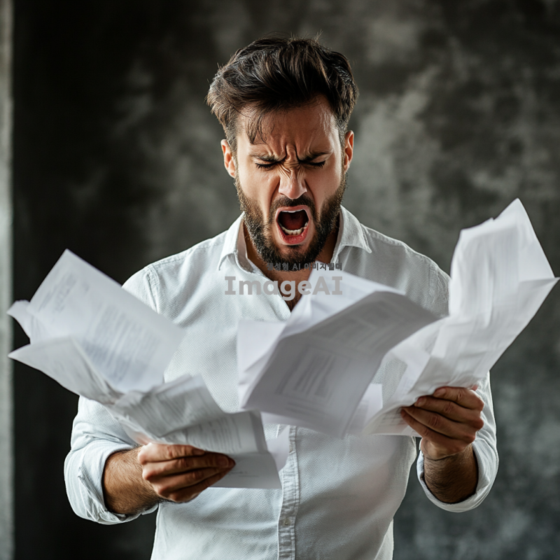 소리치는 남성, 서류를 찢는다