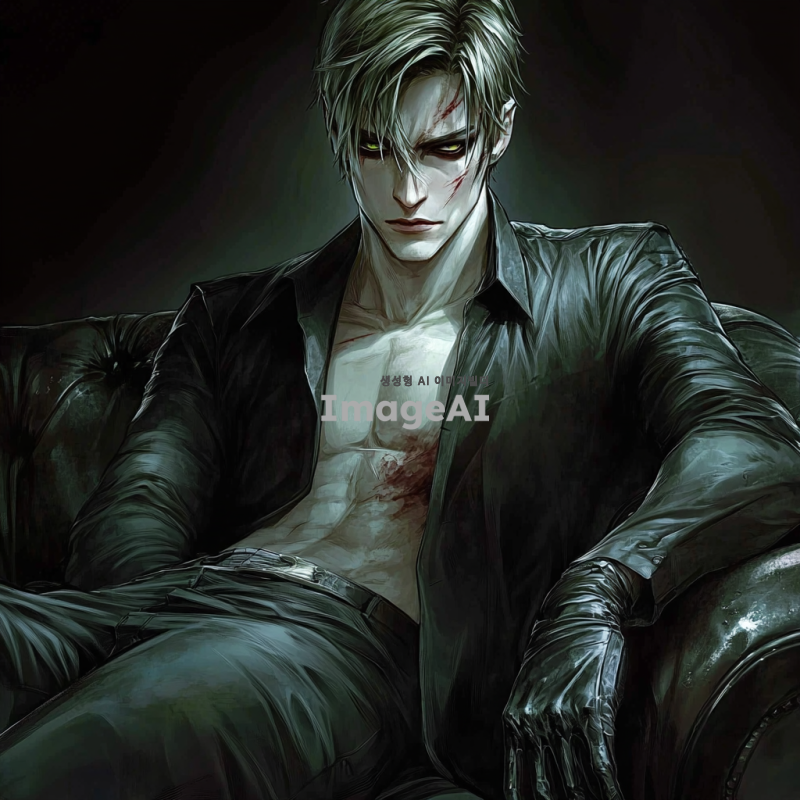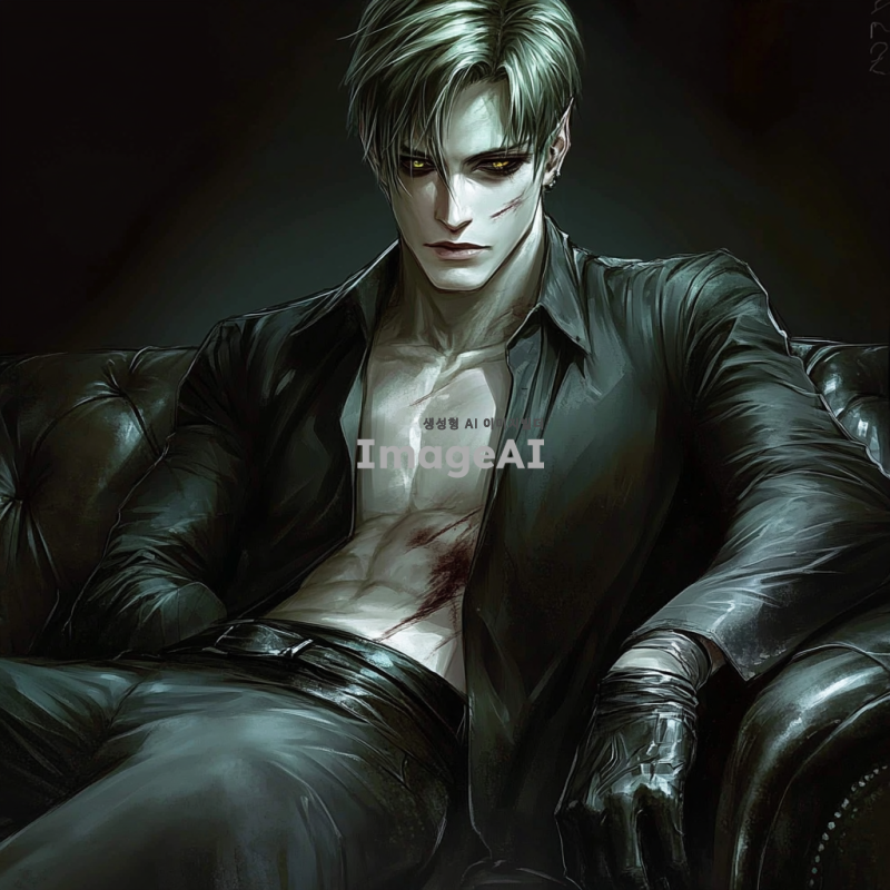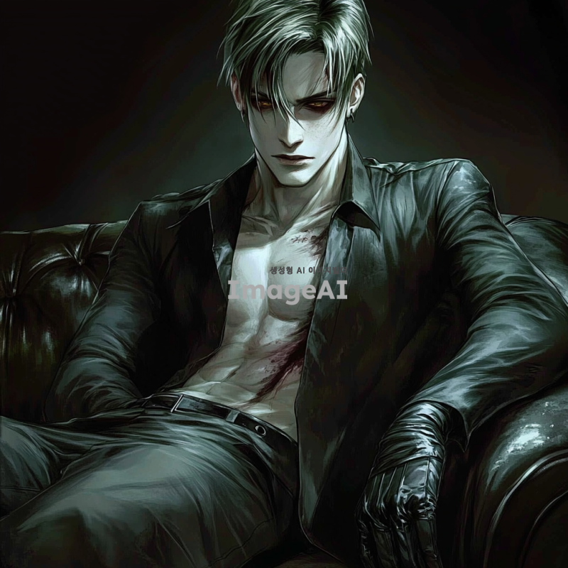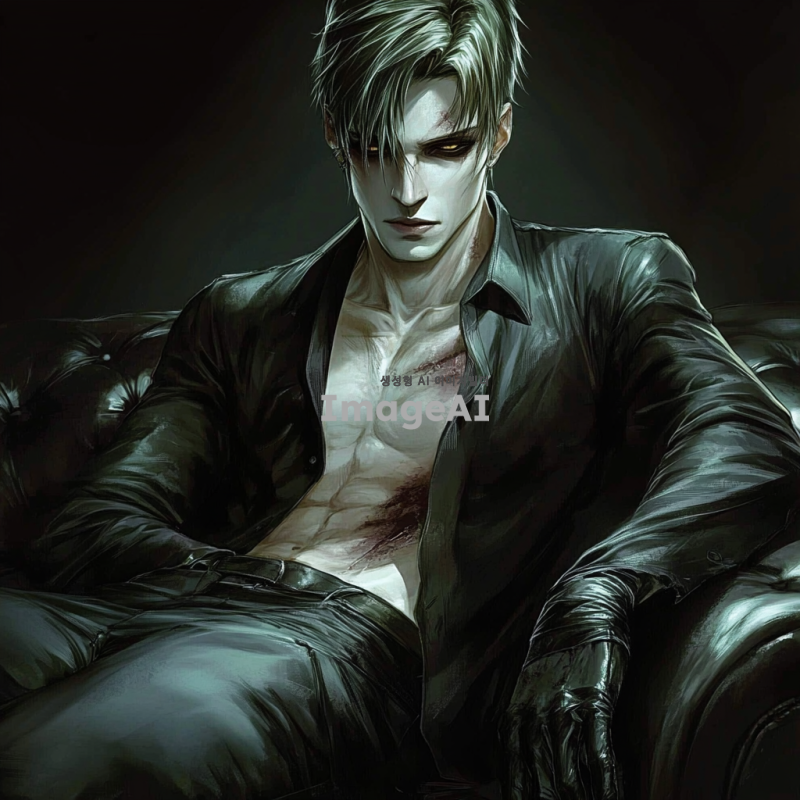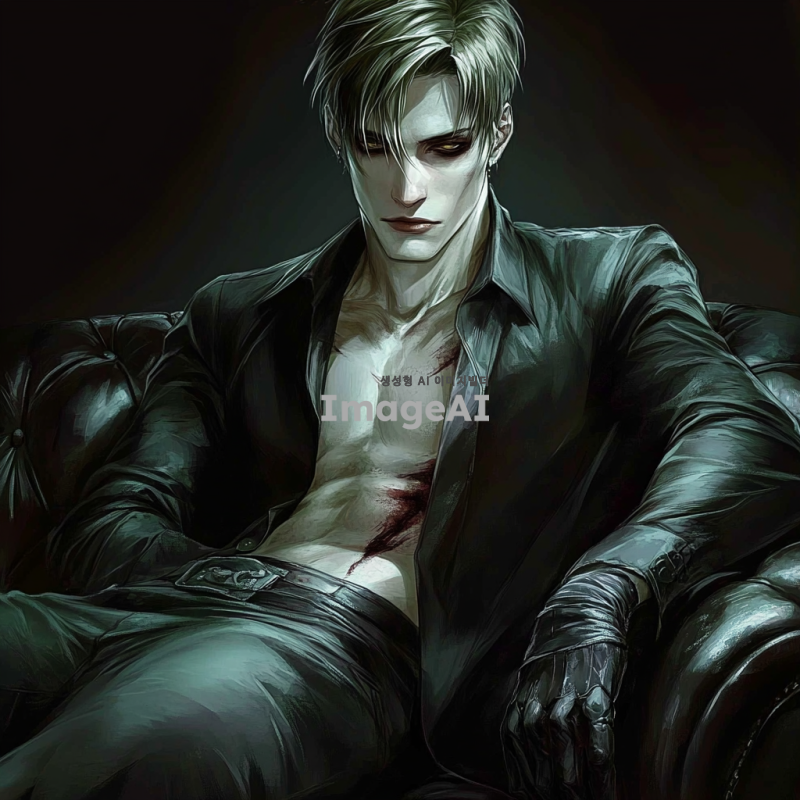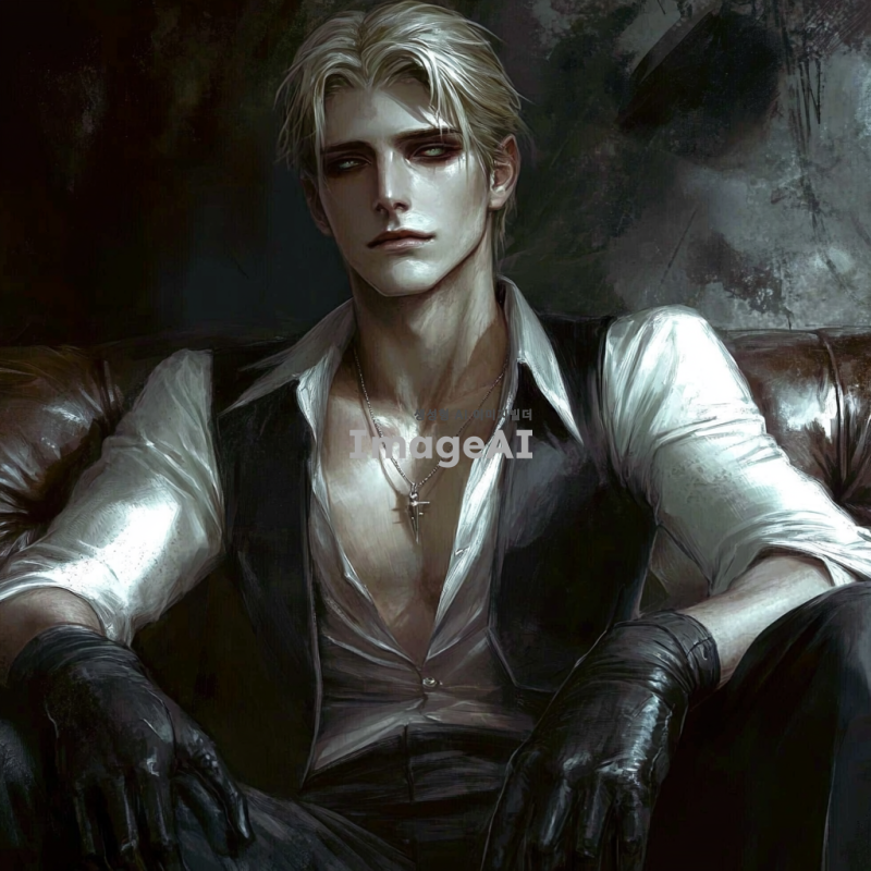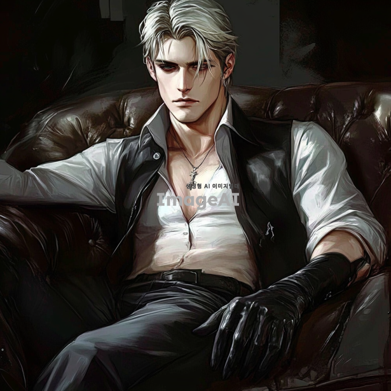 매우 잘생긴 남자, 날카로운 특징, 차가운 표정, 금발 머리, 애니메이션 아트와 비주얼 노벨 캐릭터 디자인 스타일, 창백한 피부색, 넓은 어깨와 좁은 허리를 가진 근육질의 몸이 가죽 소파에 앉아 있으며, 풀린 셔츠와 손에 장갑을 끼고 있다. 뱀파이어 느낌, 어두운 배경, 클로즈업 초상화, 판타지, 애니메이션 스타일, 어두운 회색 색조, 게임 커버를 위한 그림, 전체 길이, 애니메이션 스타일, 전체 몸 포즈, 애니메이션 리얼리즘, 애니메이션 아트, 아트스테이션 트렌딩, 디지털 일러스트레이션, 높은 디테일, 날카로운 초점, 일러스트레이션, 판타지 아트, 어두운 분위기, 만화 아트스타일, 애니메이션 아트, 판타지 아트.