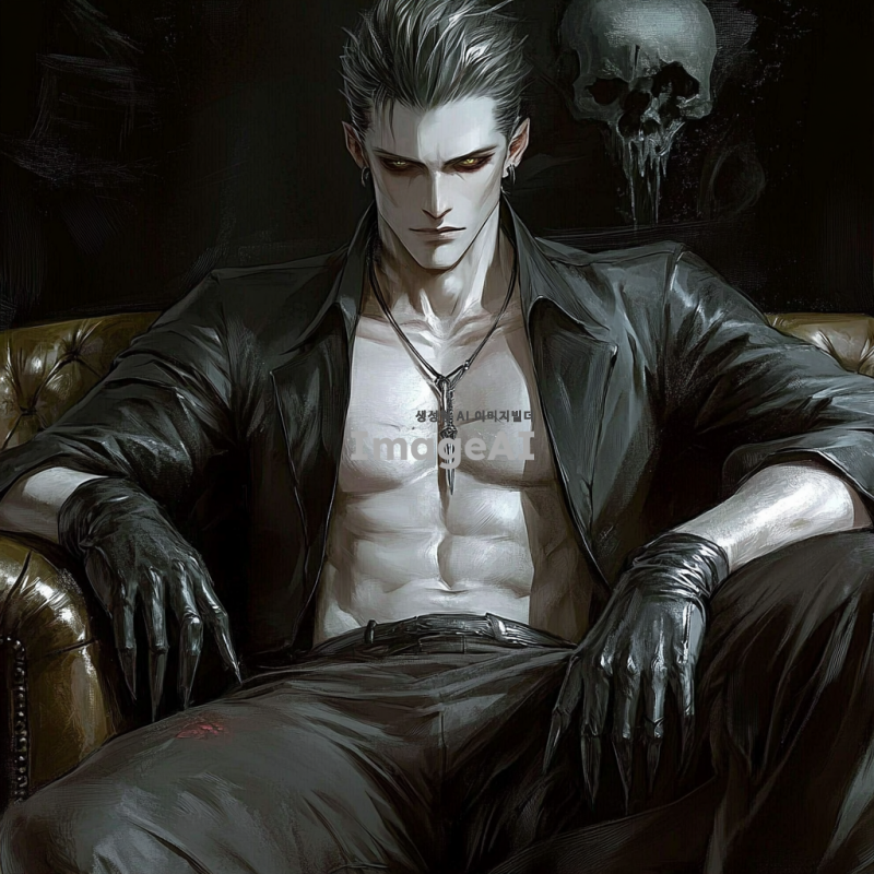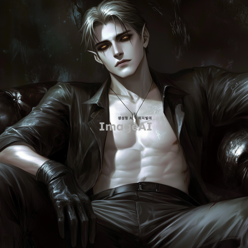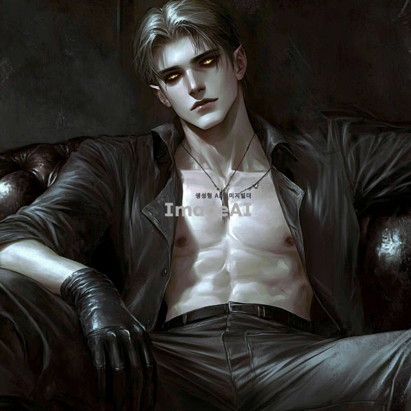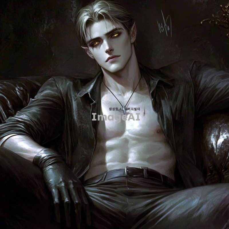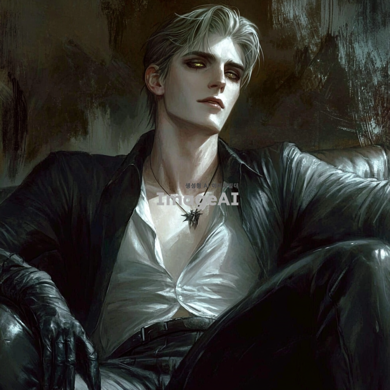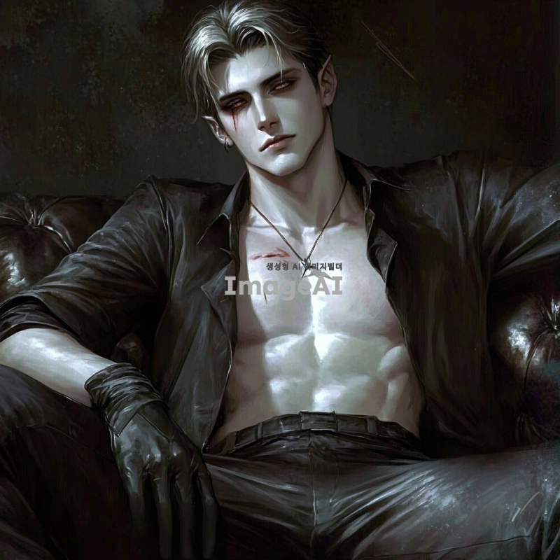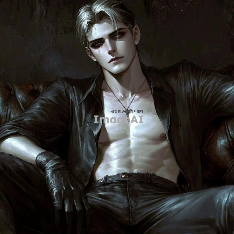 매우 잘생긴 남자, 날카로운 특징, 차가운 표정, 금발 머리, 애니메이션 아트와 비주얼 노벨 캐릭터 디자인 스타일, 창백한 피부색, 넓은 어깨와 좁은 허리를 가진 근육질의 몸이 가죽 소파에 앉아 있으며, 풀린 셔츠와 손에 장갑을 끼고 있다. 뱀파이어 느낌, 어두운 배경, 클로즈업 초상화, 판타지, 애니메이션 스타일, 어두운 회색 색조, 게임 커버를 위한 그림, 전체 길이, 애니메이션 스타일, 전체 몸 포즈, 애니메이션 리얼리즘, 애니메이션 아트, 아트스테이션 트렌딩, 디지털 일러스트레이션, 높은 디테일, 날카로운 초점, 일러스트레이션, 판타지 아트, 어두운 분위기, 만화 아트스타일, 애니메이션 아트, 판타지 아트.