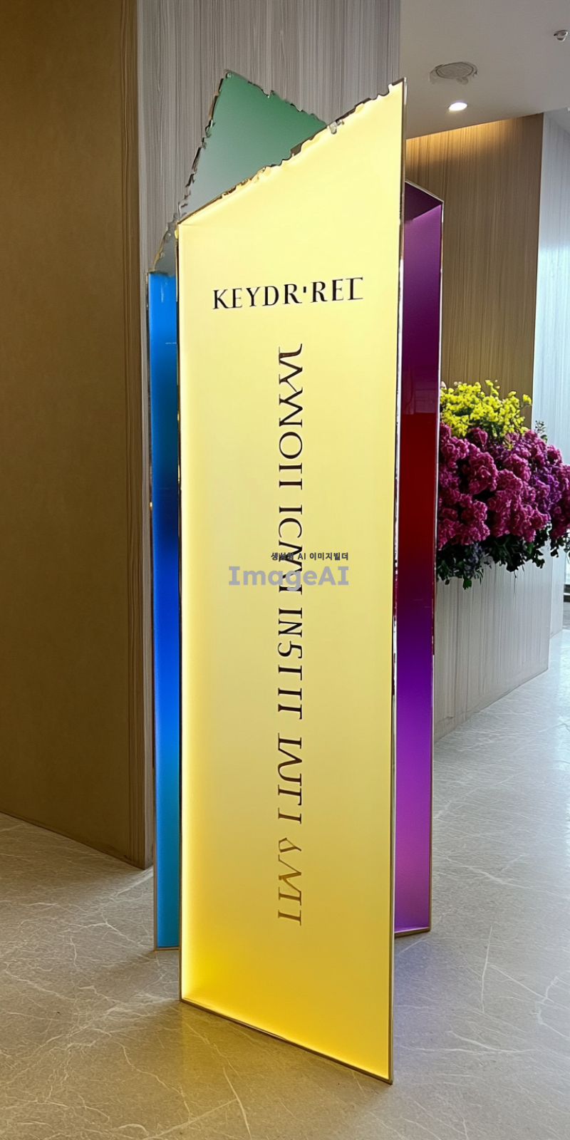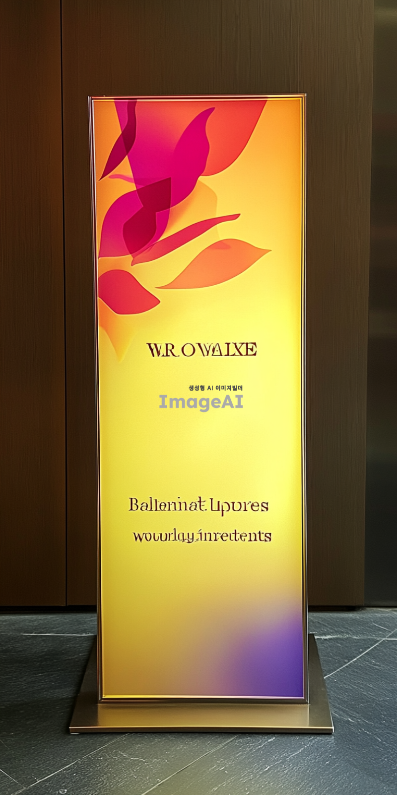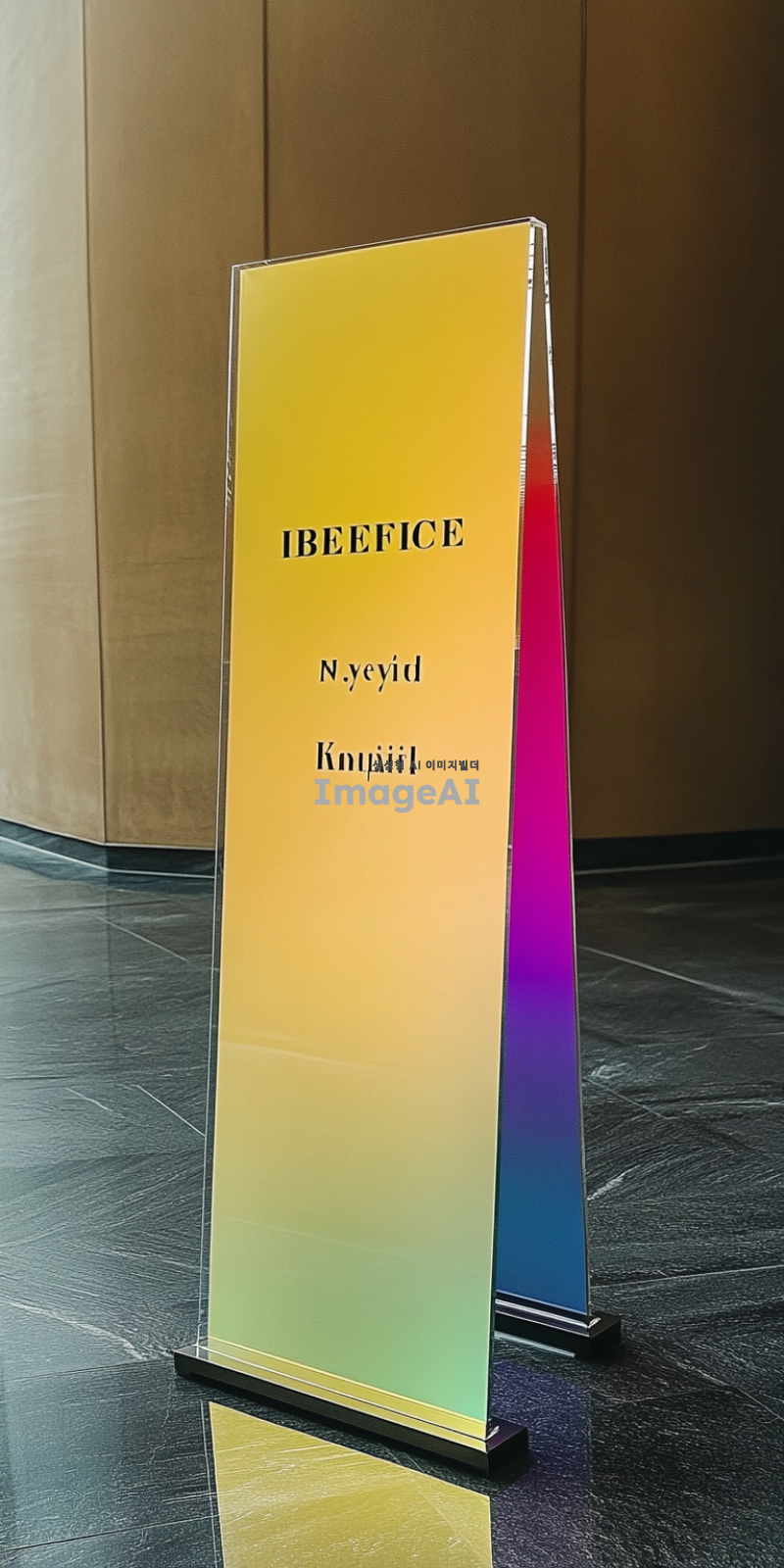 밝고 선명한 컬러의 아크릴 사인보드, 현대적인 디자인, 고급스러운 마감, 주변 조명으로 강조된 텍스트, 매끄럽고 깔끔한 테두리, 다양한 색상이 조화를 이루는 배경, 실내 환경에 잘 어울리는 세련된 스타일, 텍스트는 간결하고 읽기 쉬운 폰트 사용, 사인보드의 크기는 중간 정도, 시선을 끄는 디자인 요소 추가.