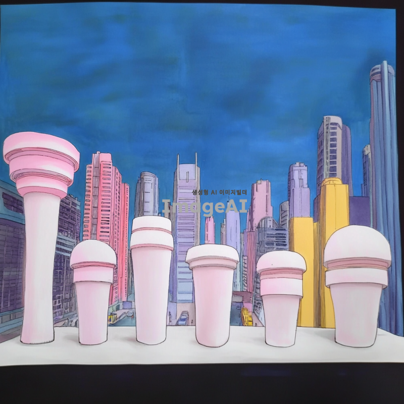 첨부된 이미지의 스타일과 분위기를 참고하여, 밝고 생동감 있는 색감을 사용한 현대적인 도시 풍경을 그린다. 마천루와 고층 빌딩이 조화를 이루며, 하늘은 맑고 푸른 색조를 띠고 있다. 도시의 거리에는 사람들이 활기차게 움직이고 있으며, 다양한 교통수단이 어우러져 있다. 전체적으로 미래지향적이고 깨끗한 도시 이미지를 표현한다.