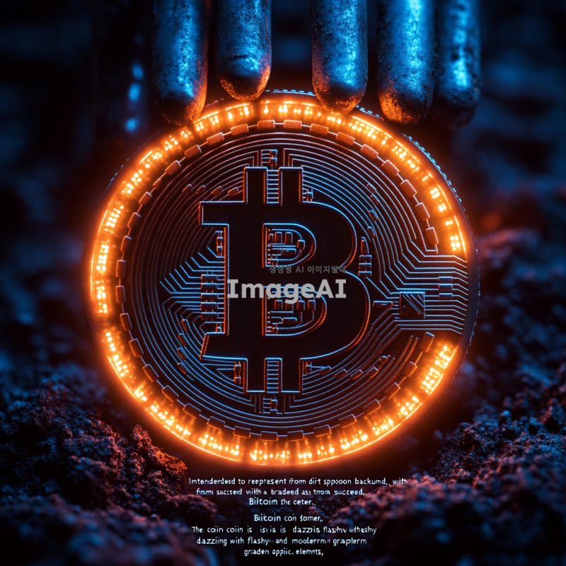 흙수저를 배경으로 한 비트코인을 나타내고자 하며 흙수저 출신이지만 트레이더로 성공한 배경으로, 가운데에 반짝이는 금색 비트코인 동전이 중심에 위치하고 있으며 동전은 반짝반짝 화려하고 현대적인 그래픽요소들을 품고 있고 푸른 네온불빛도 반짝이지만, 동전 외의 배경은 가난했던 삶을 보여주기에 황토색 흙배경에 빈곤해보이는 모습을 띄고있다