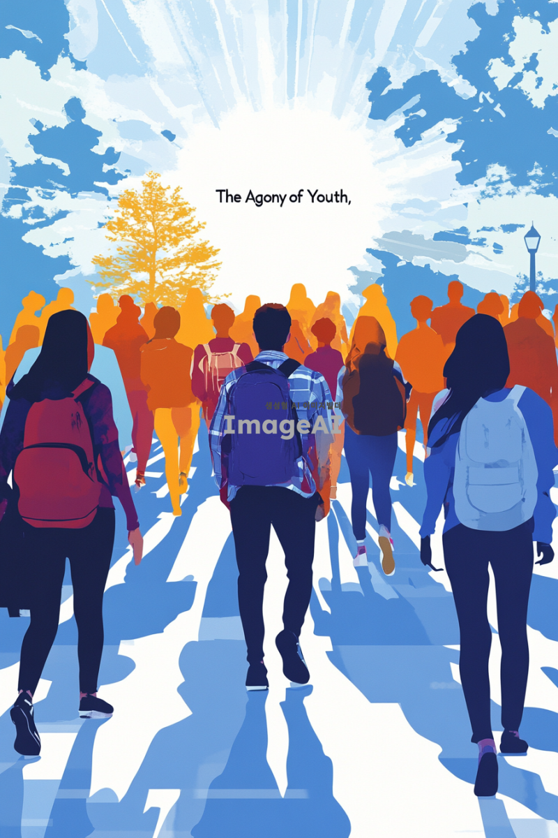 청년 실업과 은둔 청년 문제가 심각해지고 있어 이에 대해 경제적인 영향을 알고 싶어 탐구하였다-> 청년 은둔의 사회적 비용 분석, 청년 구직 활동 지원금의 정책 효과 분석, 청년 취업을 증가시키기 위한 방안 제언과 관련된 책을 쓰려고 하는데 이 책의 이름은 청춘의 고뇌고 이 책의 표지를 만들어 줄 수 있니? 책의 주제가 좀 어둡지만 책의 표지는 어둡지 않았으면 해
