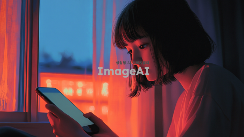단발머리를 한 여학생이 피곤한 표정으로 다크써클이 가득한 얼굴을 하고 있다. 그녀는 스마트폰을 내려놓고 방 안에 앉아 있으며, 창 밖으로 밝아진 새벽 하늘을 바라보고 있다. 창문 밖으로는 여명이 밝아오는 하늘이 보이며, 방 안은 부드러운 새벽빛으로 은은하게 비추고 있다. 전체적인 색감은 새벽의 차분하고 부드러운 분위기를 반영하며, 4K 해상도로 세밀하게 표현되어 있다.
