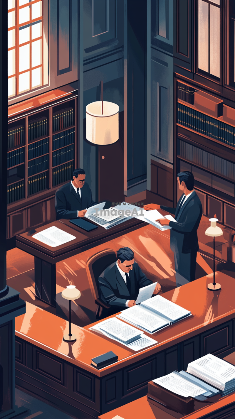 SEC 증권거래위원회와 관련된 법적 공방을 주제로 한 이미지. 법정에서 서류를 검토하는 변호사들, 법정의 장엄한 분위기, 법률 서적과 문서들이 쌓여 있는 책상, 법정에서 진지한 표정으로 토론하는 변호사와 판사, 법정의 내부 장식과 법률 관련 상징들이 강조된 장면