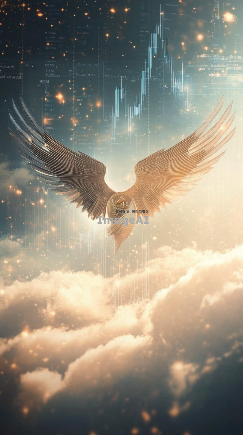 리플코인이 날개를 단 채로 하늘을 나는 모습, 배경은 코인 차트가 하늘처럼 펼쳐져 있으며, 차트의 그래프가 상승하는 곡선을 그리는 장면, 리플코인의 날개는 빛나는 금속 재질로 반짝이며, 주변에는 구름이 흩어져 있는 모습, 전체적인 분위기는 희망적이고 밝은 느낌.