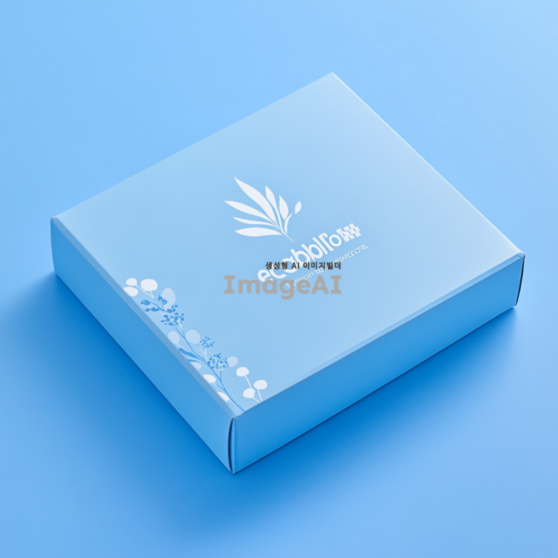 연한 하늘색의 토너패드 단상자, 상자의 중심에 Ecobloom 로고가 선명하게 인쇄되어 있는 모습