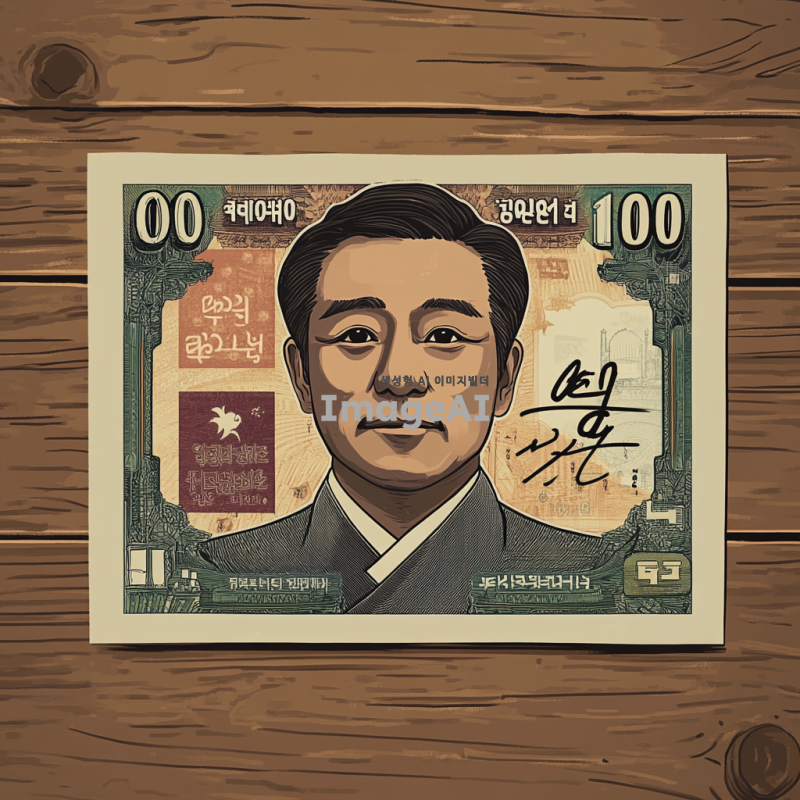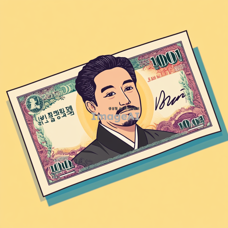 한국 만 원 짜리 지폐 한 장 그려줘. 근데 거기 개인적으로 싸인 하나가 적인 그림을 그려줘 만화 형식으로