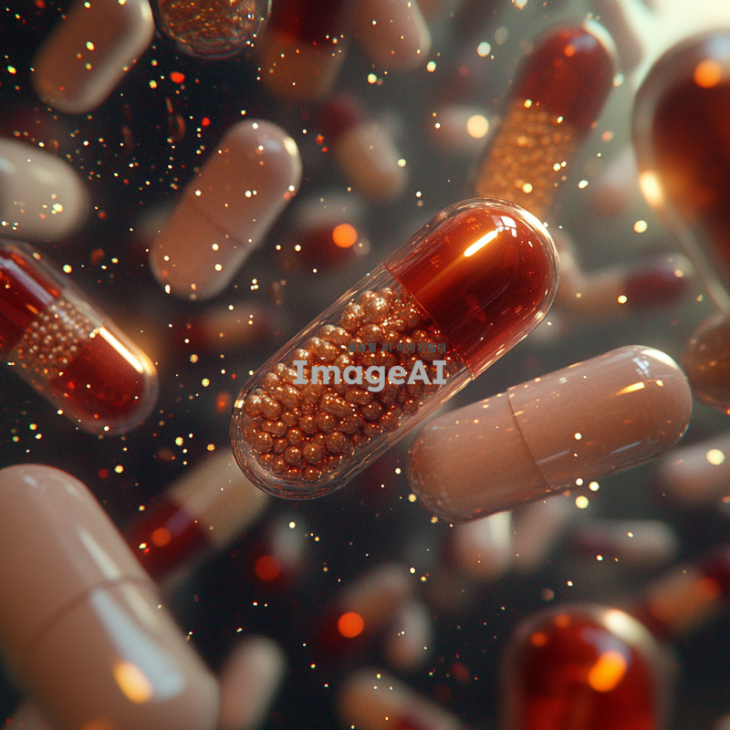 깨끗하고 현대적인 디자인의 캡슐과 정제 이미지, 다양한 크기와 색상의 캡슐과 정제, 빛을 받아 반짝이는 모습, 고해상도, 세밀한 디테일, 약학적 느낌을 강조