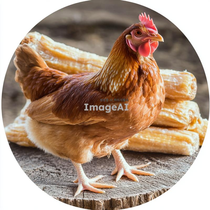 닭발이 보이고, 날개짓을 하는 닭의 그림