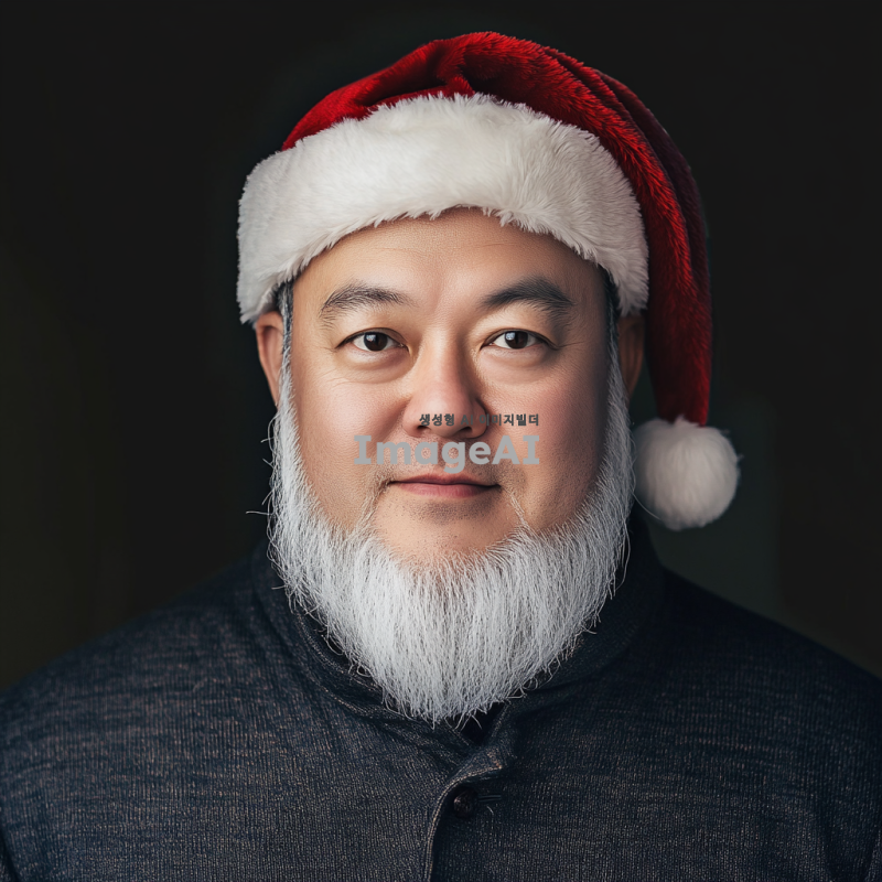 산타모자를 쓰고 긴 하얀수염을 하고 산타복장을 한 사실과 같은 이미지