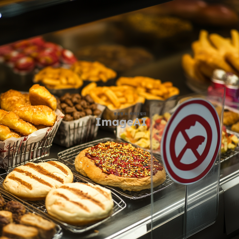 나쁜 음식들위에 금지 표시가 있음