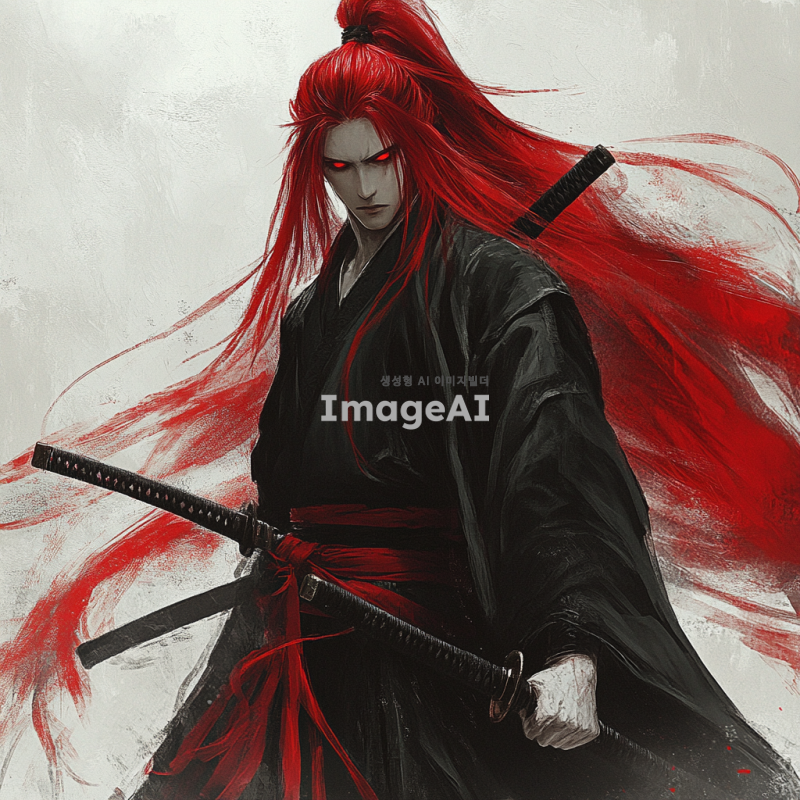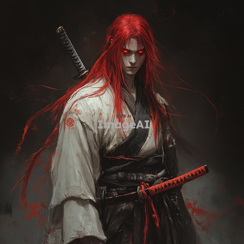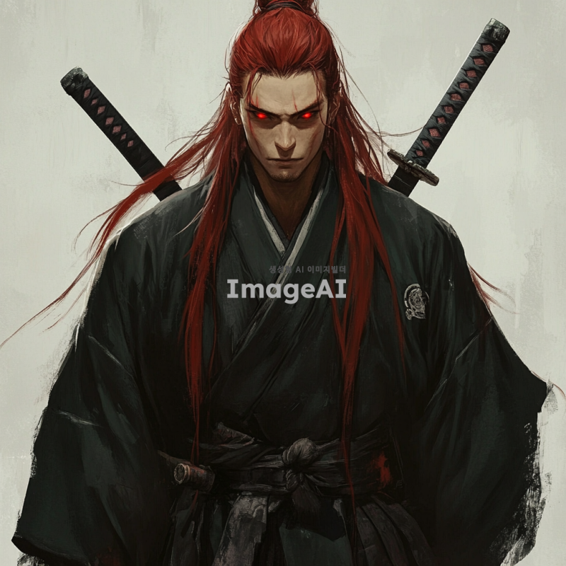 길고 붉은 머리카락을 묶어놓은 남자이며 붉은 눈동자가 있다 옷은 일본식처럼 보이는 도사의 옷을 입고 있고 등뒤에 검 하나와 허리에 두개의 검을 차고있다