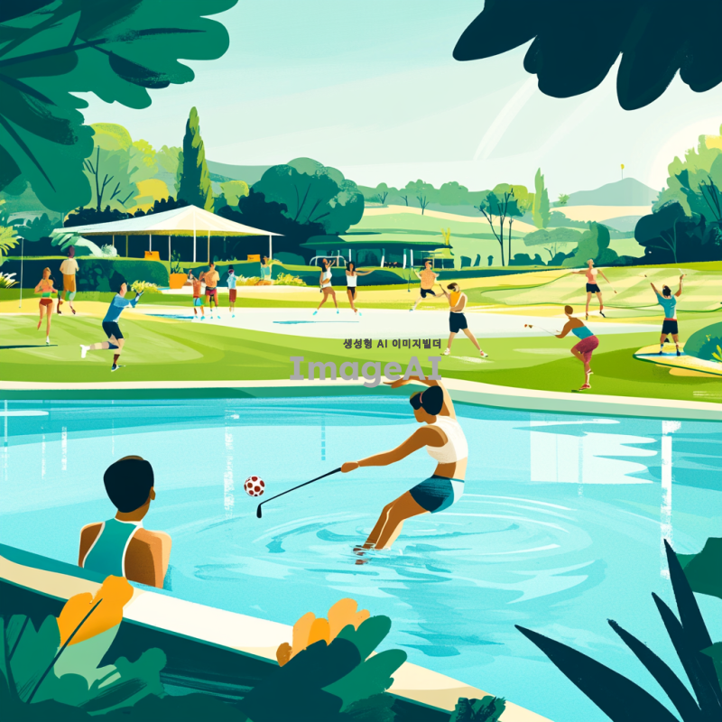 수영하는 사람, 맑고 푸른 수영장에서 자유형으로 수영하는 역동적인 모습, 물방울이 튀는 생생한 장면