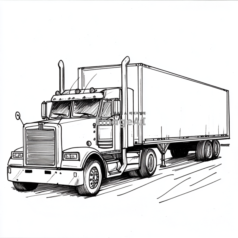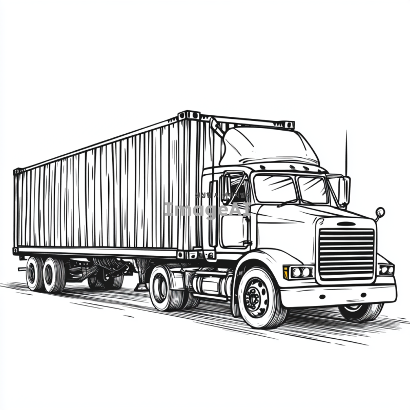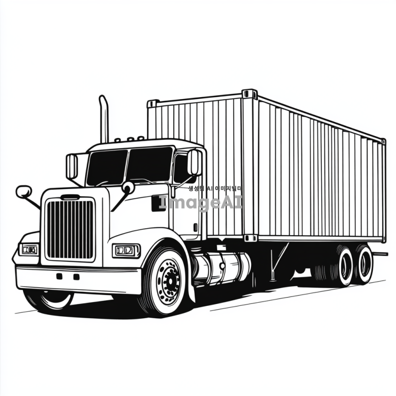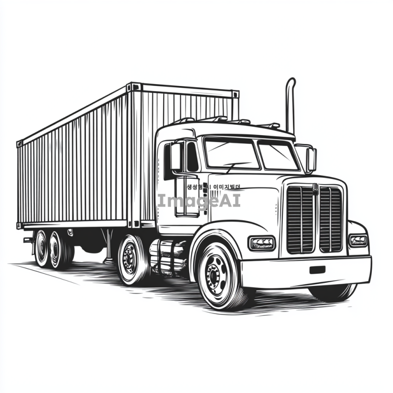 컨테이너트럭을 그려줘. 아이들 색칠하기용으로 필요해서 단순한 모양으로 부탁해.