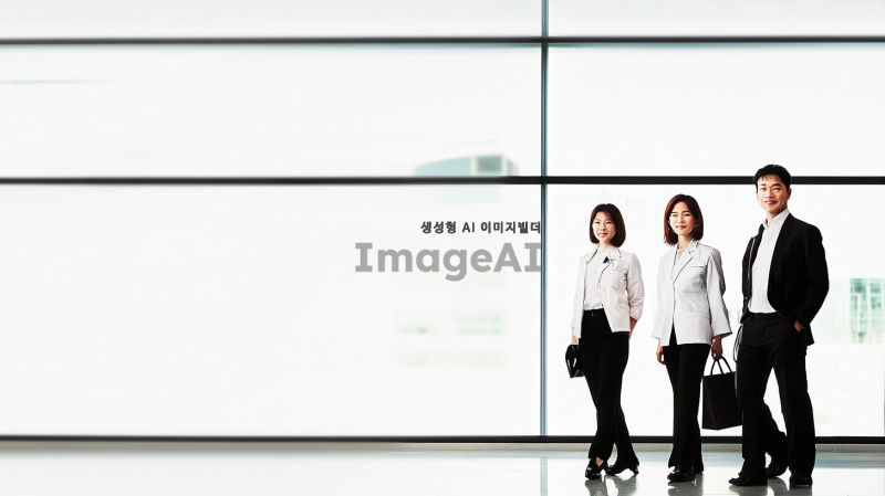 사람들이 오른쪽에 배치되어 있고, 이미지의 검은색 배경 대신 밝은색 깔끔한 무채색 배경으로 변경되어야 함