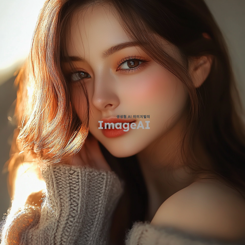 사진속의 여성이 따스한 조명속 포근한 니트를 입고 있다.