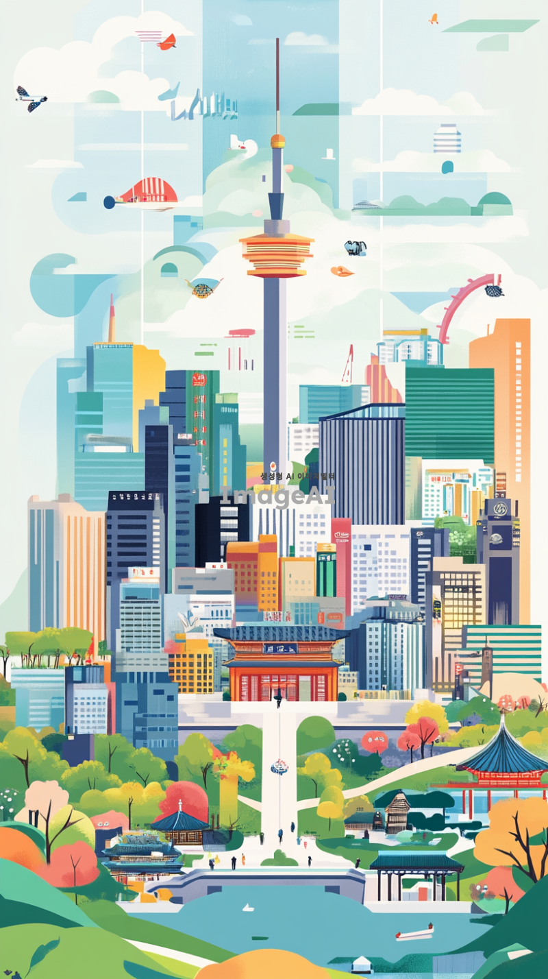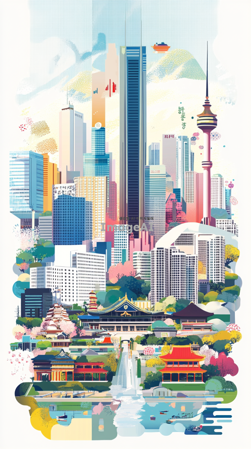 대한민국 인천을 관광하는 외국인을 위해 영어로된 포스터를 만드는데 포스터안에 사람은 없었으면 좋겠고 인천의 랜드마크들이 들어갔으면 좋겠어 그리고 다양한 문구들이 들어가면 좋을것같아