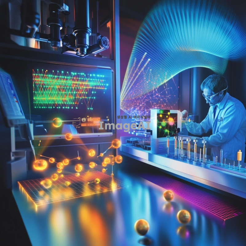금 나노입자의 표면 플라스몬 공명(SPR) 효과를 시각적으로 표현한 이미지. 금 나노입자가 빛과 상호작용하여 전자들이 진동하는 모습을 중심으로, 빛의 파장에 따라 나노입자의 색이 변하는 장면을 포함. 배경은 실험실 환경으로, 다양한 과학 장비와 함께 연구자가 관찰하는 모습. 나노입자의 크기와 형태에 따른 SPR 효과의 차이를 강조하여, 각각의 나노입자가 다른 색으로 나타나는 장면. 빛의 파장과 나노입자 간의 상호작용을 설명하는 그래프나 도표를 추가하여 과학적 이해를 돕는 요소 포함.