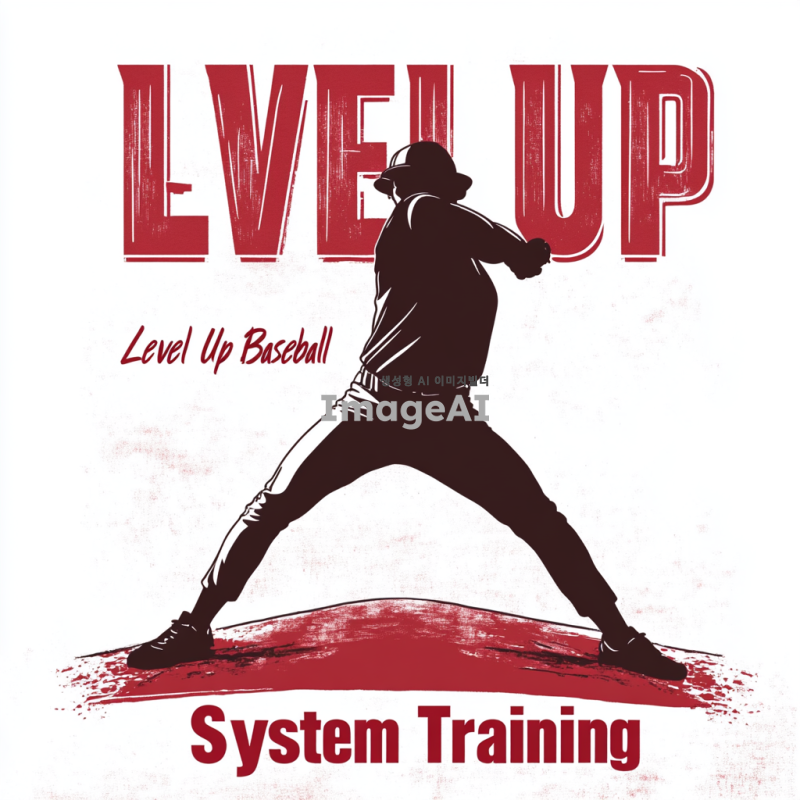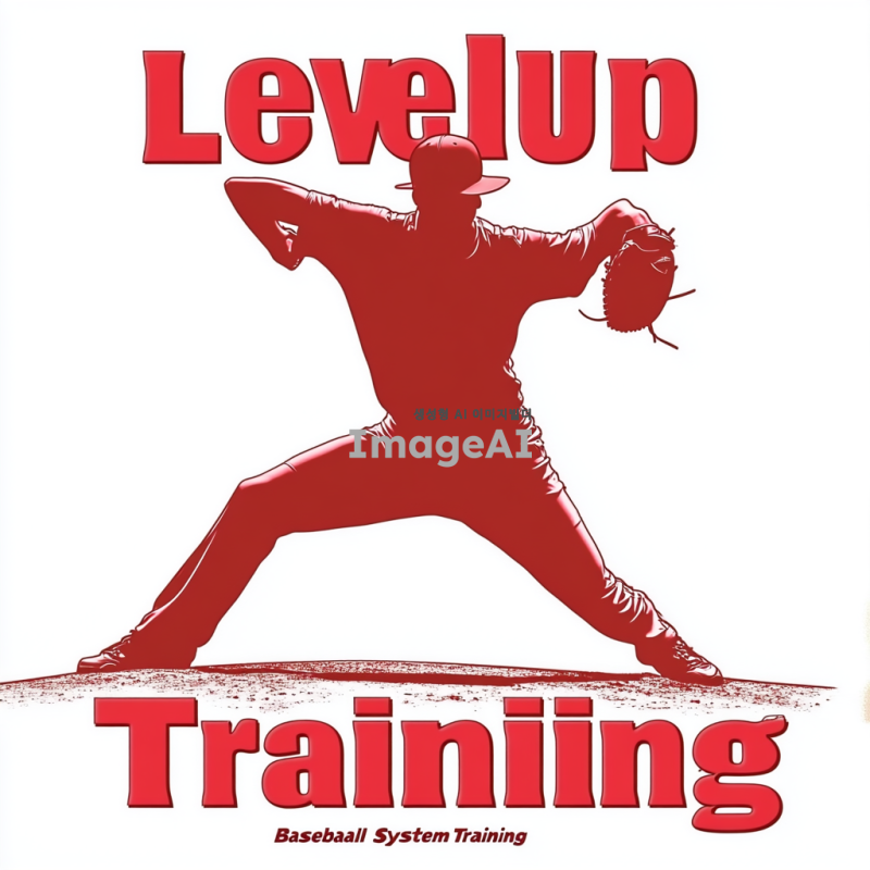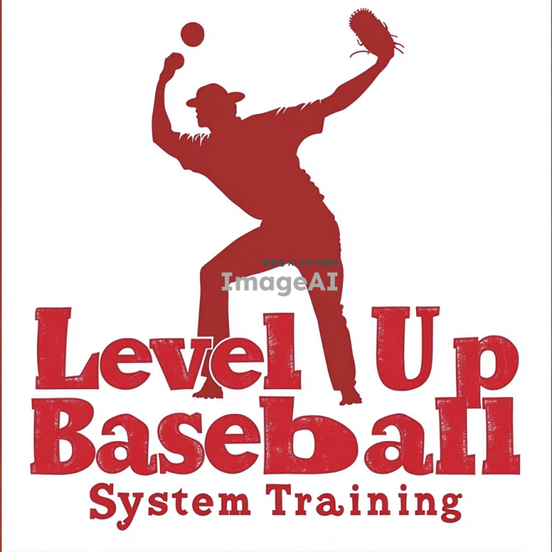 빨간색 글자로 크게 Level Up Baseball System과 작은 글자로 밑에 Training이라는 글자.