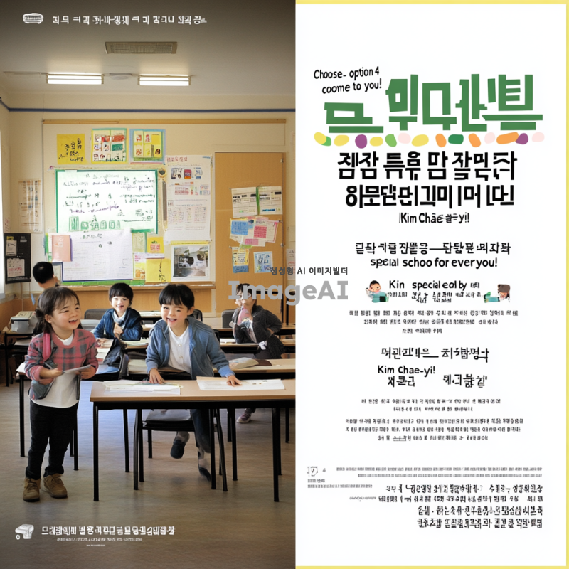 "4번을 선택하면 영화가 찾아옵니다! 다 함께 즐기는 특별한 학교, 김채이가 만듭니다!"이 문구로 포스터를 그리기.