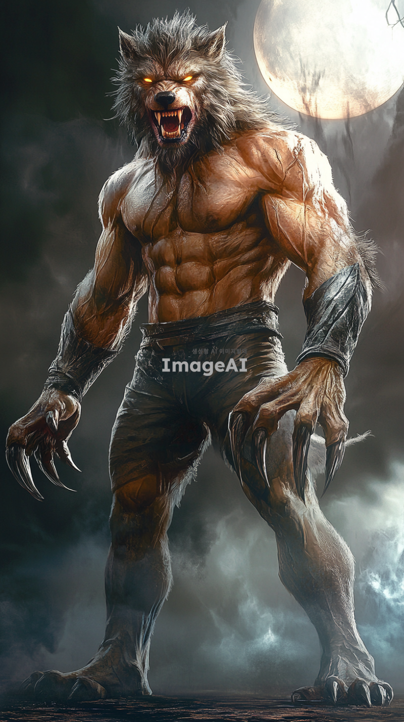 늑대에서 영감을 받은 고도로 사실적인 인간형 캐릭터로, 원초적인 공포와 야생적인 힘을 불러일으키도록 디자인되었습니다. 이 캐릭터는 키가 크고 근육질의 인간형 몸매를 가지고 있으며, 거친 짙은 회색과 검은 털로 덮여 있고, 은빛 줄무늬가 섞여 있어 늑대의 자연스러운 털을 연상시킵니다. 얼굴은 인간과 늑대의 특징이 융합되어 있으며, 넓고 각진 주둥이, 빛나는 노란색 세로형 눈동자, 그리고 송곳니가 드러난 채 위협적으로 드리운 침이 돋보입니다. 귀는 뾰족하고 예민하며, 야생적이고 포식자의 표정을 강조합니다.