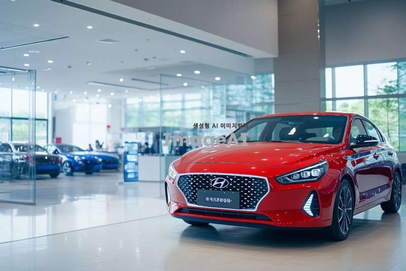 현대자동차 생산공장에서 일하는 한국인 직원들이 자부심을 느끼며 협력하고 있는 모습, 현대적인 공장 내부 배경, 정교한 자동차 조립 라인, 직원들이 서로 소통하며 작업하는 장면, 밝고 긍정적인 분위기, 각자의 역할에 최선을 다하는 모습, 현대적인 작업복과 안전 장비 착용, 팀워크와 전문성을 강조하는 이미지