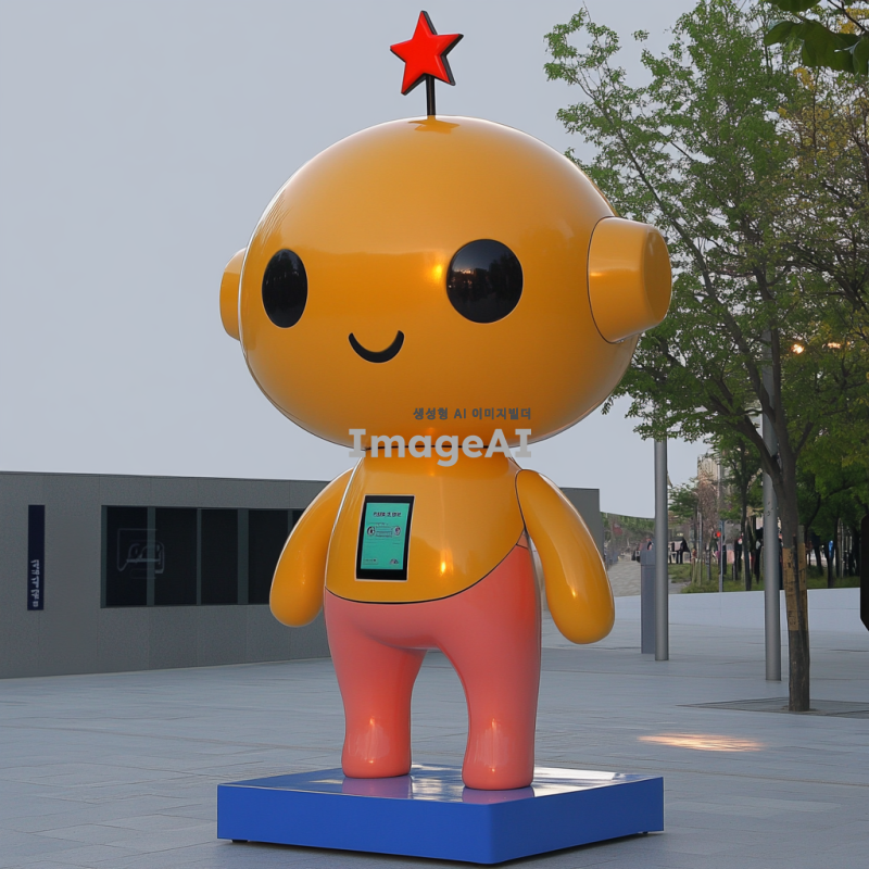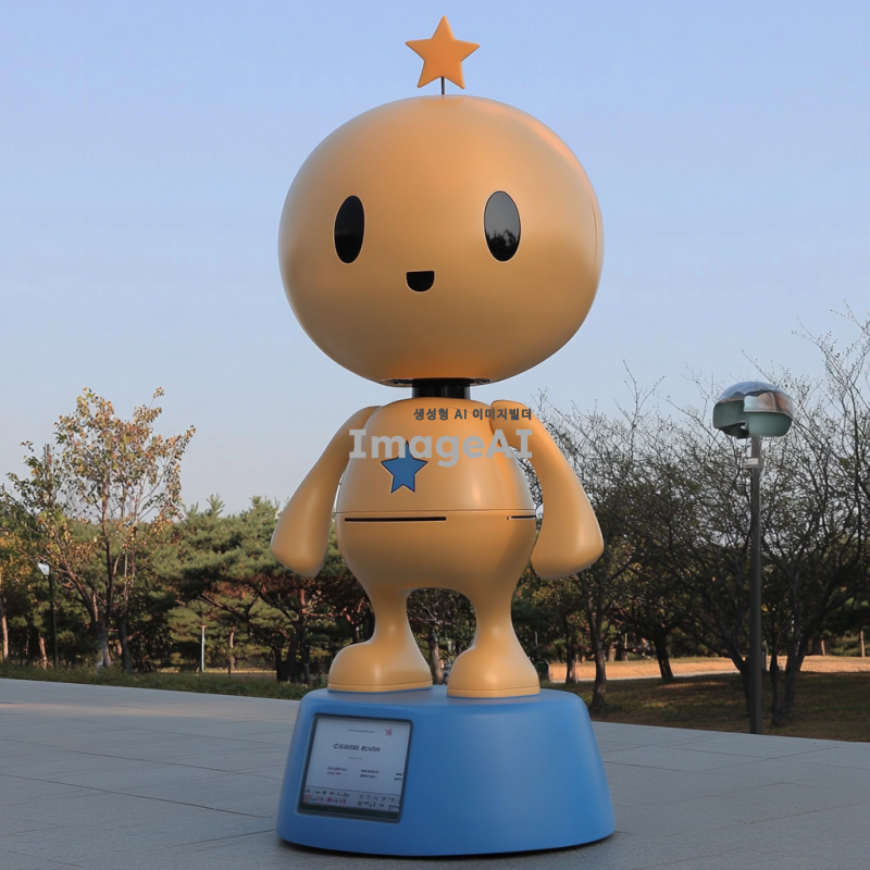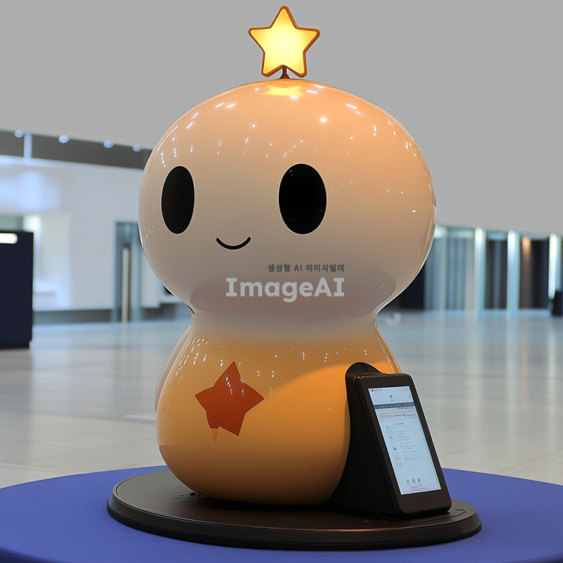 대전 엑스포 마스코트 꿈돌이를 로봇으로 제작할 에정이야 얼굴이 꼭 꿈돌이랑 같아야 하며 머리에는 별이 달려있어야 해 배에는 안내로봇처럼 키오스크를 부착해줘