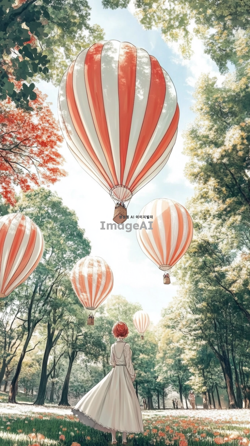 밝고 선명한 파란 하늘 아래, 다양한 색상의 풍선들이 자유롭게 떠다니는 모습. 따뜻한 햇살이 비추며, 사람들은 웃고 즐거운 표정을 짓고 있다. 꿈과 모험의 상징으로, 하늘을 바라보며 희망찬 미래를 상상하는 장면. 주변에는 푸른 나무와 꽃들이 만발해 있어 자연의 아름다움이 함께 어우러진 풍경. 전체적으로 따뜻하고 희망적인 느낌을 주는 이미지.