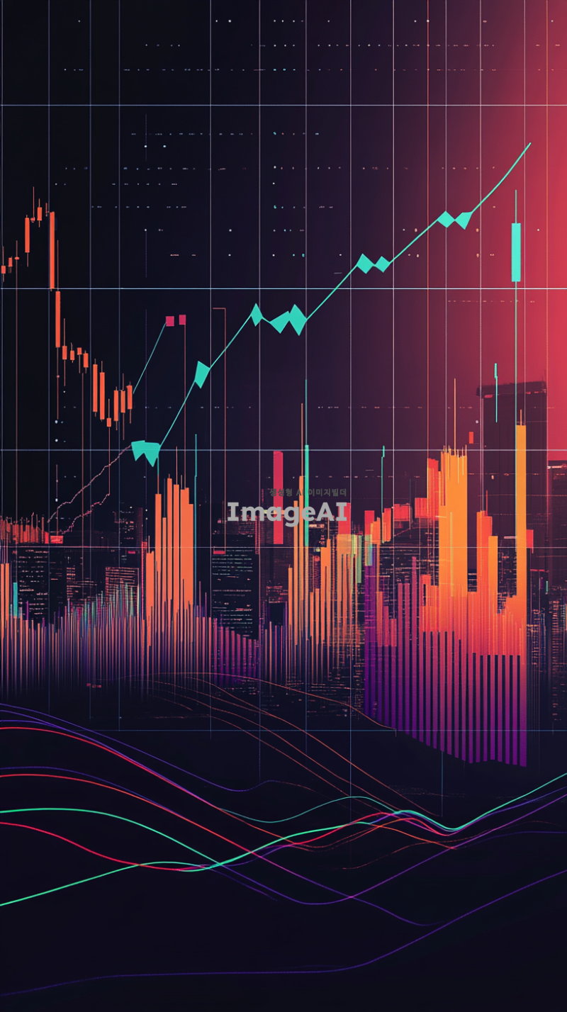 횡보하는 리플 차트를 배경으로 한 이미지, 다양한 색상의 선들이 수평으로 움직이며 변동이 적은 모습을 표현, 차트의 축에는 숫자와 날짜가 표시되어 있고, 전체적인 분위기는 안정적이며 조용한 느낌, 현대적인 디자인 요소 추가, 금융 시장을 연상시키는 요소 포함