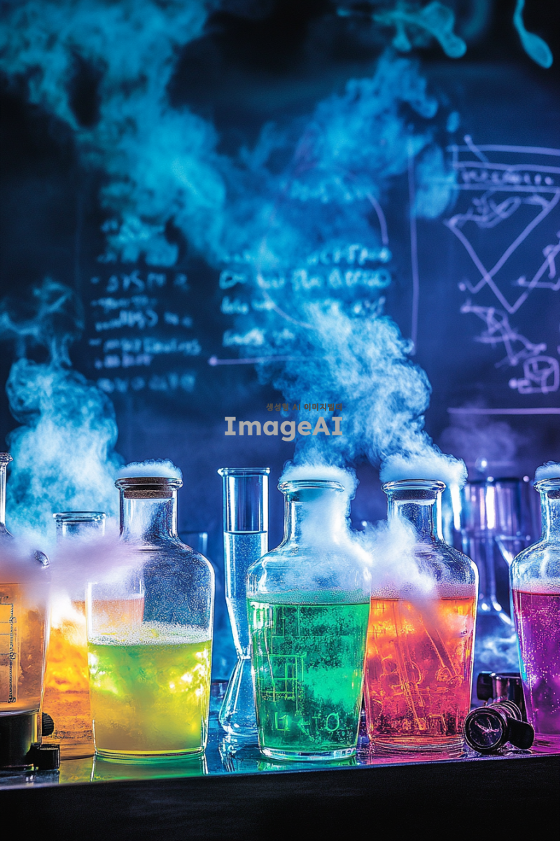 칵테일바 홍보 포스터를 만들건데. 과학실 컨셉