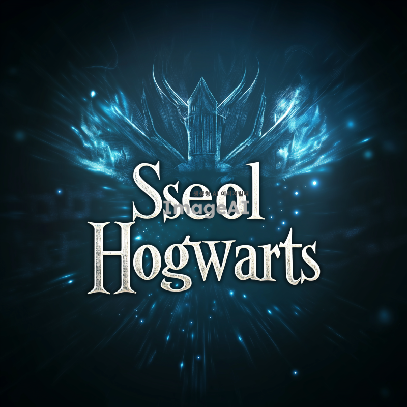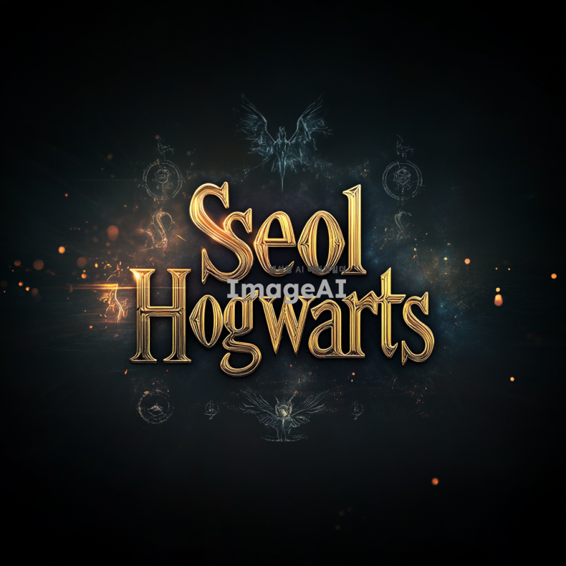"썰호그와트"라는 글씨가 크게 중앙에 위치하고, 배경은 마법과 판타지의 느낌을 주는 어두운 색조로 설정된 이미지. 글씨는 신비로운 느낌의 폰트로, 빛나는 효과가 추가되어 주변이 어둡더라도 글씨가 잘 보이도록 강조됨. 배경에는 흐릿한 마법의 상징이나 해리포터 세계관을 연상시키는 요소들이 subtly하게 배치되어 있음.