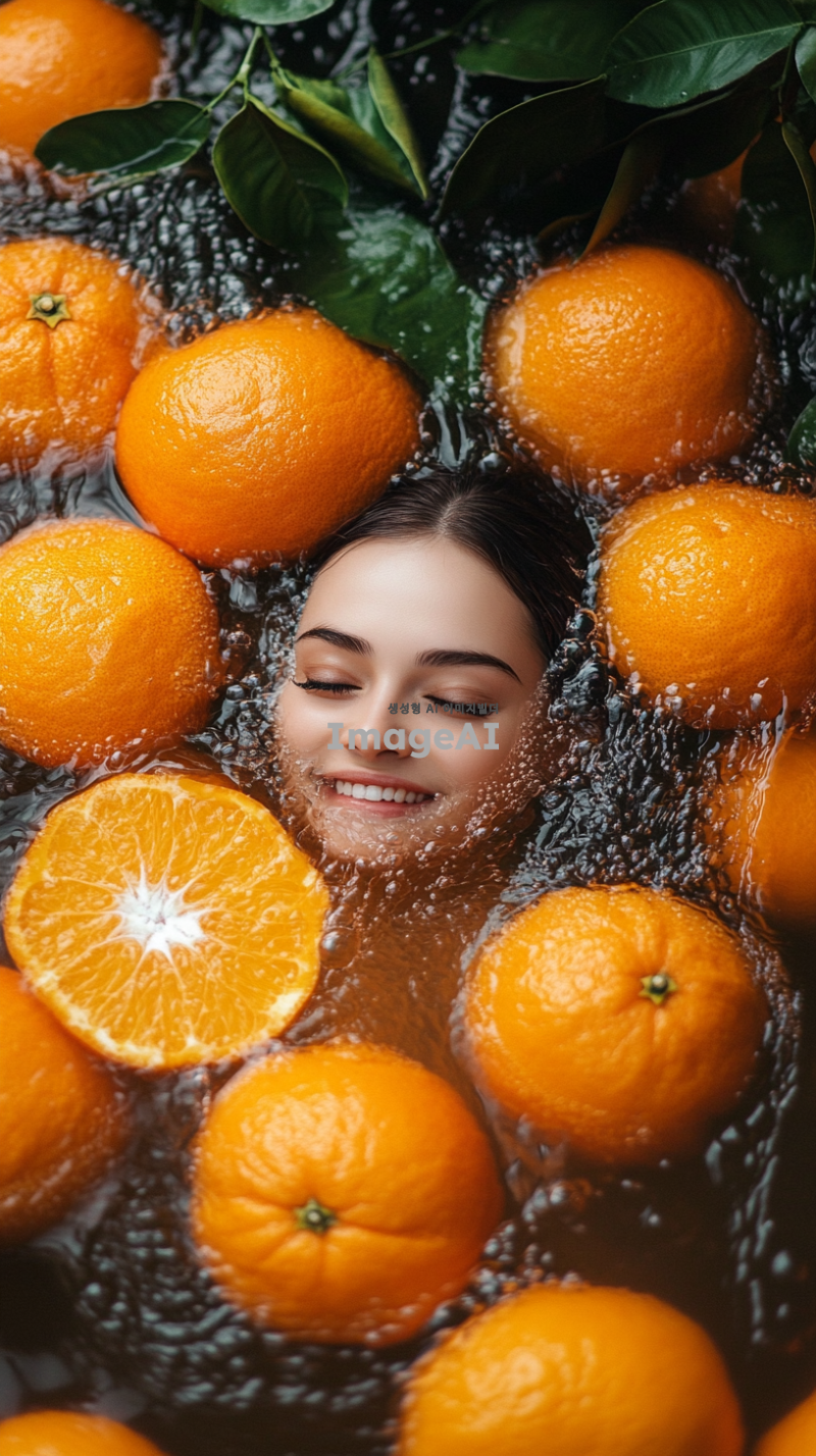 많은 오렌지가 물위에 떠있다