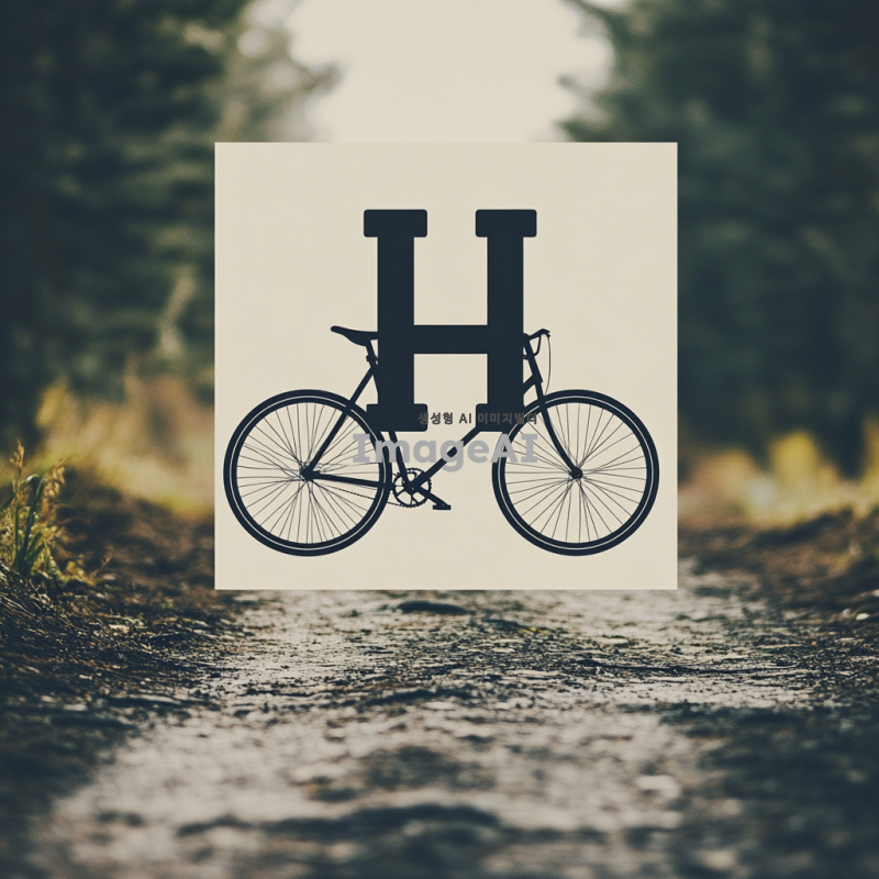 H와 자전거가 조화를 로고를 그려주세요. H는 현대적이고 세련된 디자인으로 표현되며, 자전거는 역동적이고 스포티한 느낌을 주도록 합니다. 배경은 자연 풍경이나 도시의 거리로 설정하여 H와 자전거가 함께하는 활기찬 분위기를 강조해 주세요. 최대한 심플하게