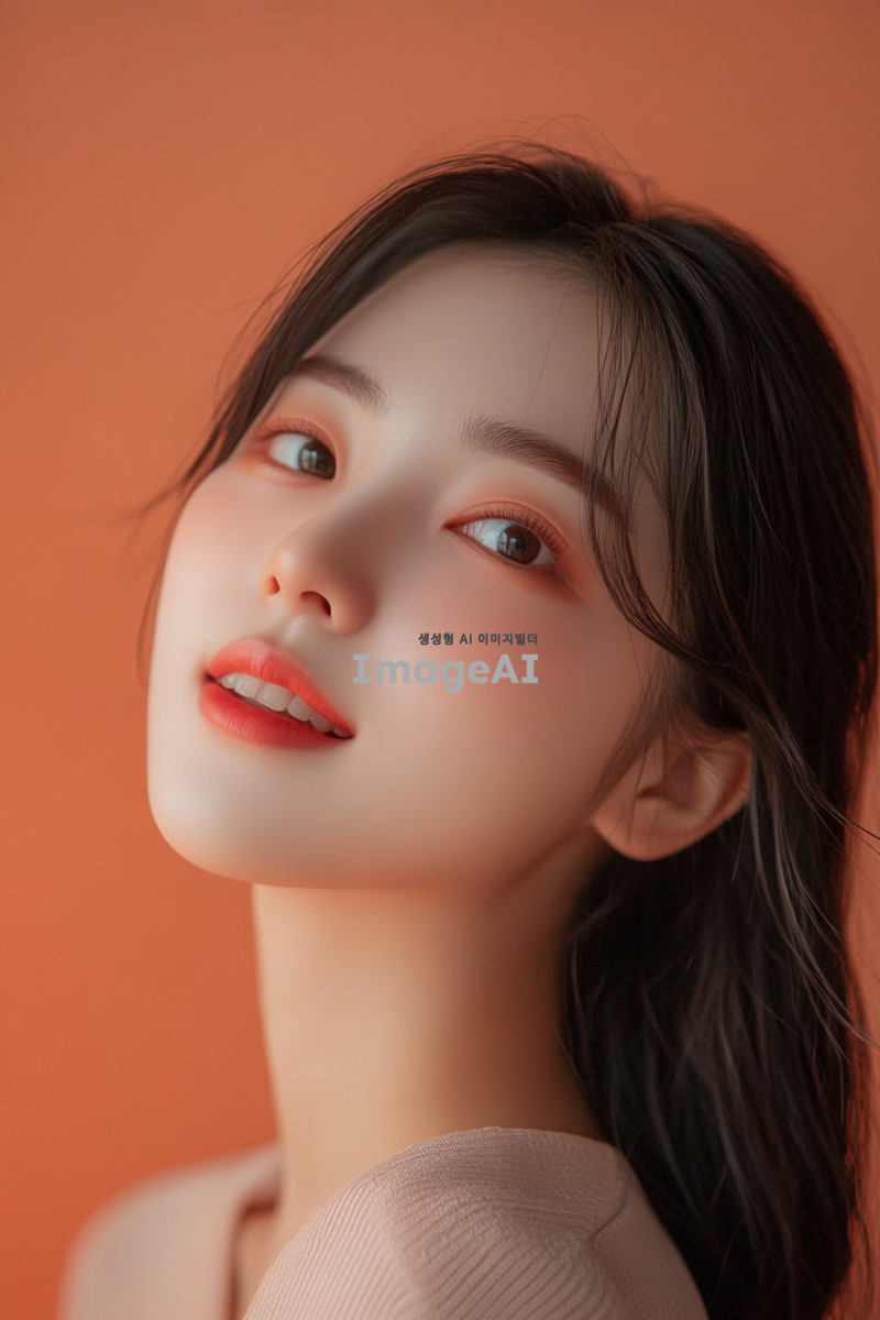 스튜디오에서 촬영한 독사진, 은은한 조명 아래에서 한국적인 분위기를 강조한 이미지, 온화한 미소를 짓고 있는 한국인 모델, 부드러운 피부톤과 자연스러운 헤어스타일, 전통적인 한국 의상이나 현대적인 스타일의 조화, 배경은 심플하고 따뜻한 색감으로 설정.